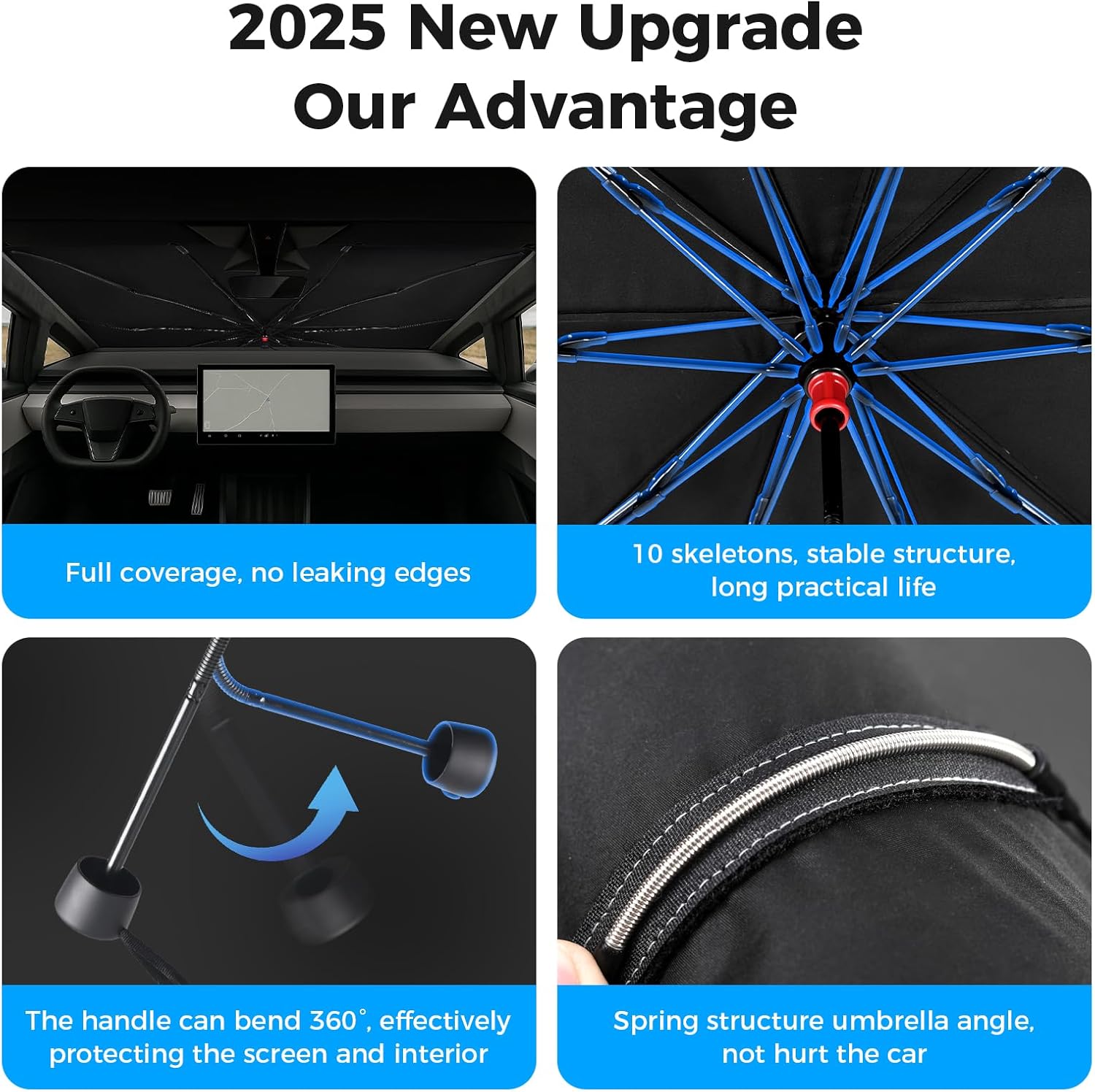 - Easy to Use & Store: Windshields umbrella is similar to an umbrella and is easy to install and store. Specially designed for 2024 2025 Cybertruck, it can be folded in seconds and seamlessly installed in our storage bag, making it easy to store under the car seat or in the door pocket.