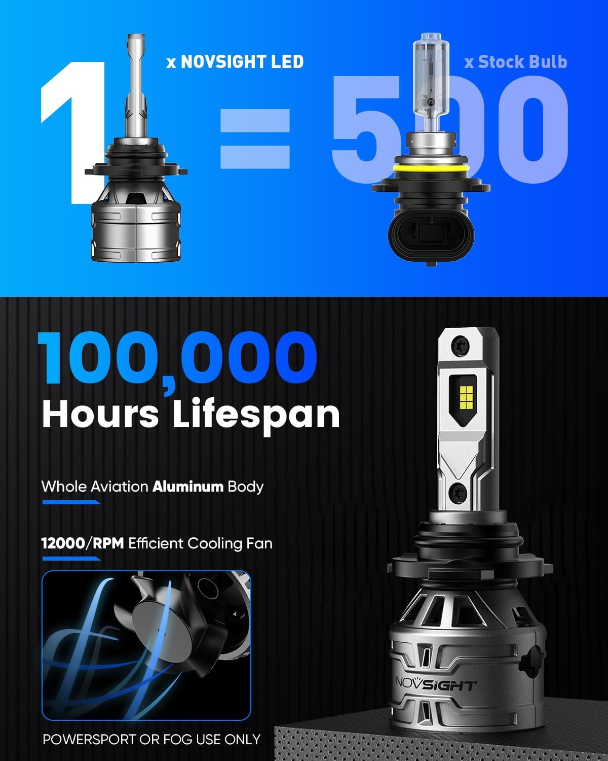 - ăBrighter Output, Clearer Night DriveăNOVSIGHT 9005 9006 bulbs offer up to 4Ă brightness over stock, helping you see farther and clearer on dark roads. Better visibility means safer driving and reduced accident risk at night.