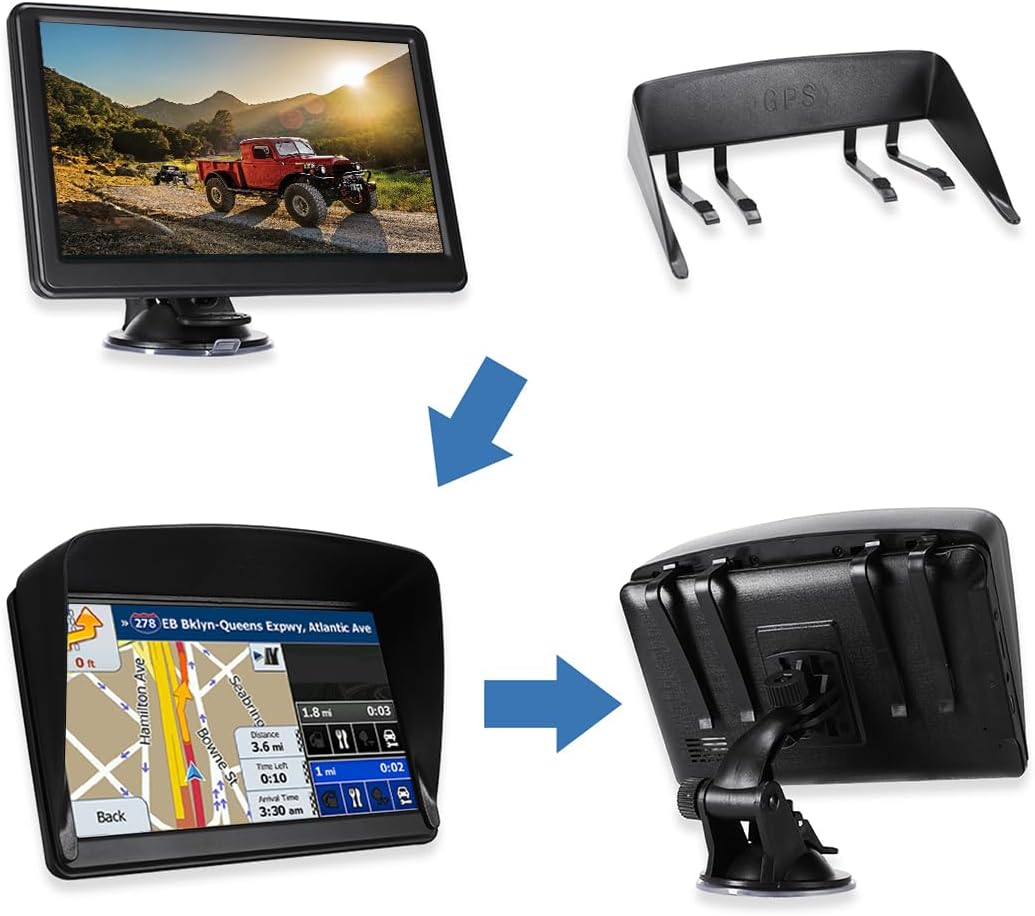 - đăSUPPORTS 7 VEHICLE MODESă - The GPS navigation is suitable for car, truck, bus, taxi, bicycle, emergency and pedestrian. When driving the vehicle, you will benefit from the information of length, width, height, weight and other data. With a suction cup and back clip, you are able to easily fix the truck GPS to the windshield or dashboard. It makes driving more comfortable.
