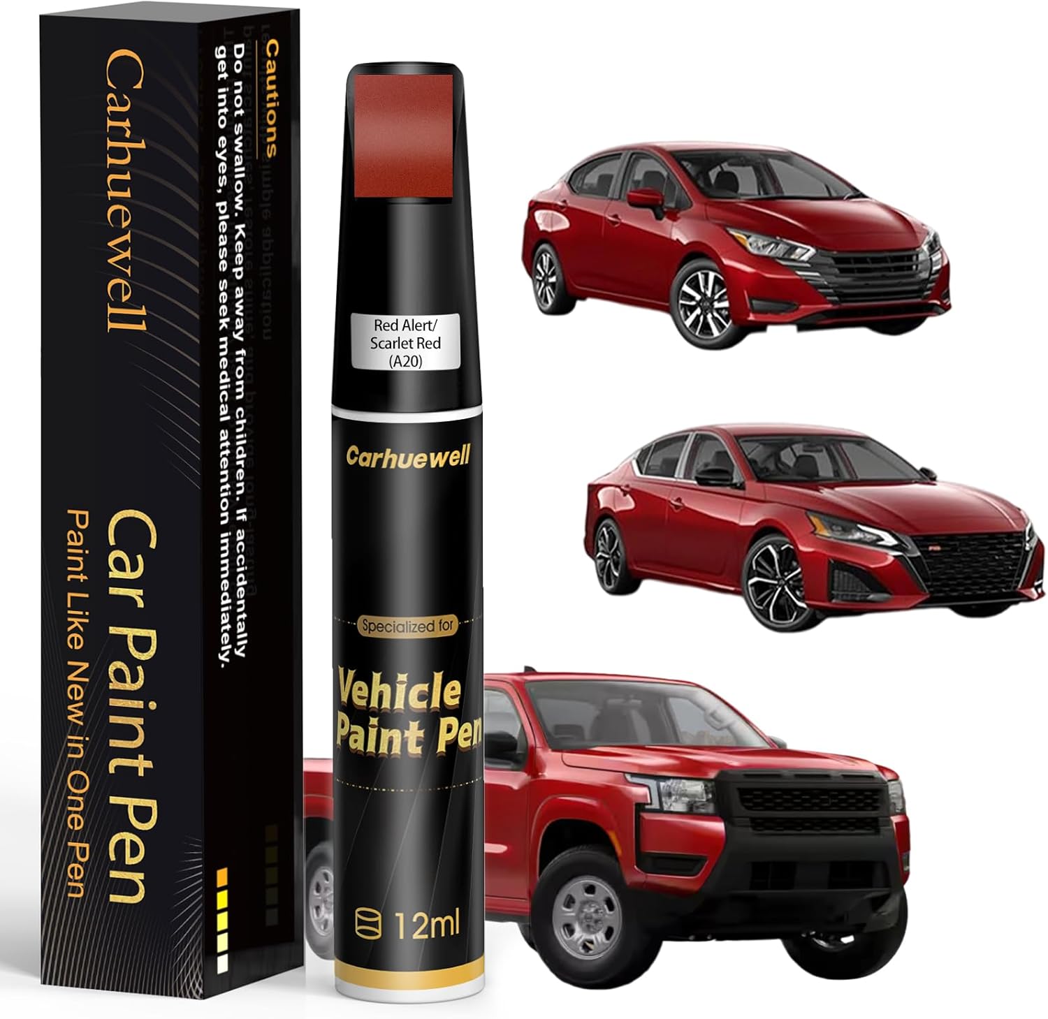 Red Alert/Scarlet Red(A20) Touch Up Paint Compatible with Nissan, Exact Match Car Paint Pen Automotive Scratch Repair Remover Kit Quick & Easy Solution for Vehile Chips and Nicks