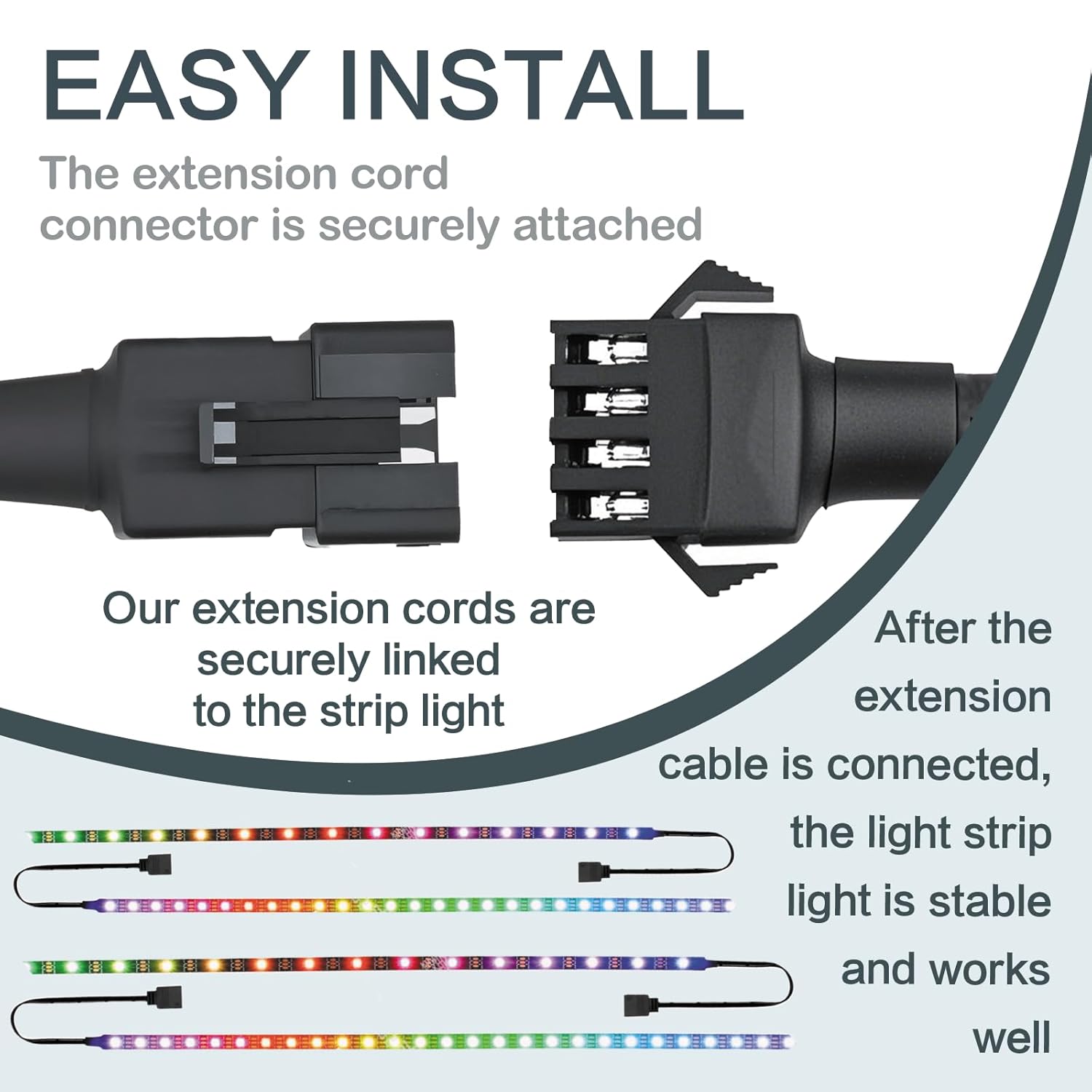 - Effortless Plug-and-Play Setup: Featuring male-to-female 4-pin connectors, these extensions enable quick and tool-free connections. Expand your motorcycle LED underglow kit or rock lights for trucks system instantly β no cutting or stripping wires required.