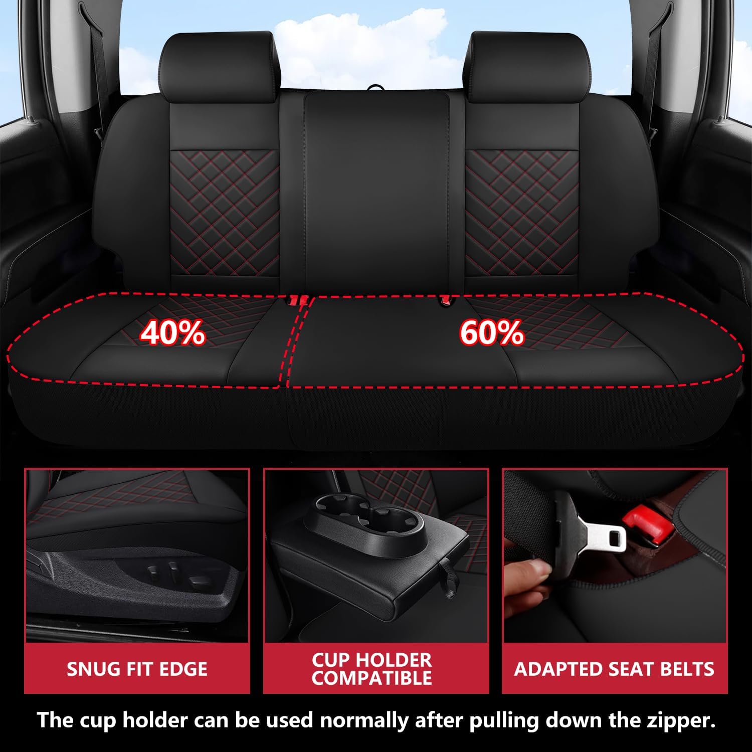 BABYBLU Chevy Chevrolet Silverado GMC Sierra Car Seat Covers Fit 2007-2023 2024 2025 1500/2500HD/3500HD (Black & Red, Full Set)