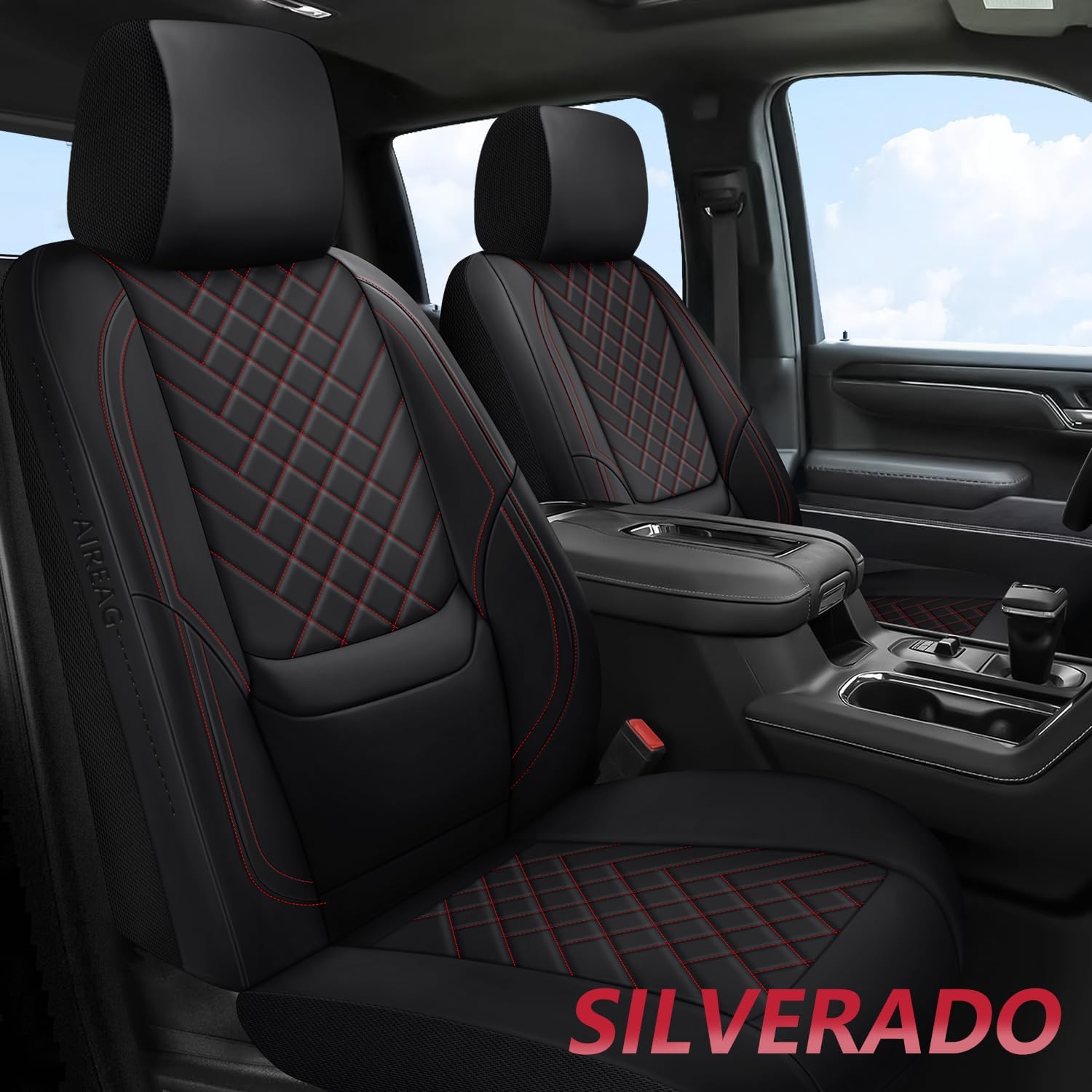 - This front silverado truck seats cover is airbag and seat buckles compatible, it will not effect the original functions of your truck. No movement and wrinkles after installed. Storage pockets are design on the back for easily store things like cellphone and magazines, increasing your truck storage.