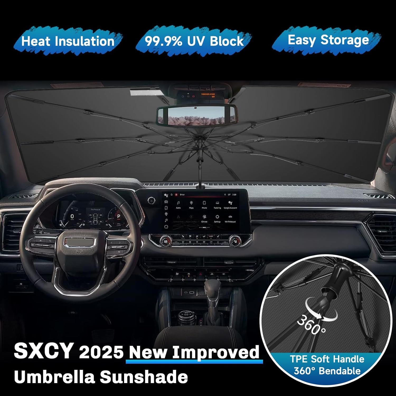 SXCY for 2023-2025 Chevy Colorado/Canyon Windshield Umbrella Sunshade [Easier Foldable] 2025 Colorado/Canyon Accessories 2025 Colorado Sunshade Umbrella for 2025 Colorado Windshield Sun Shade Umbrella