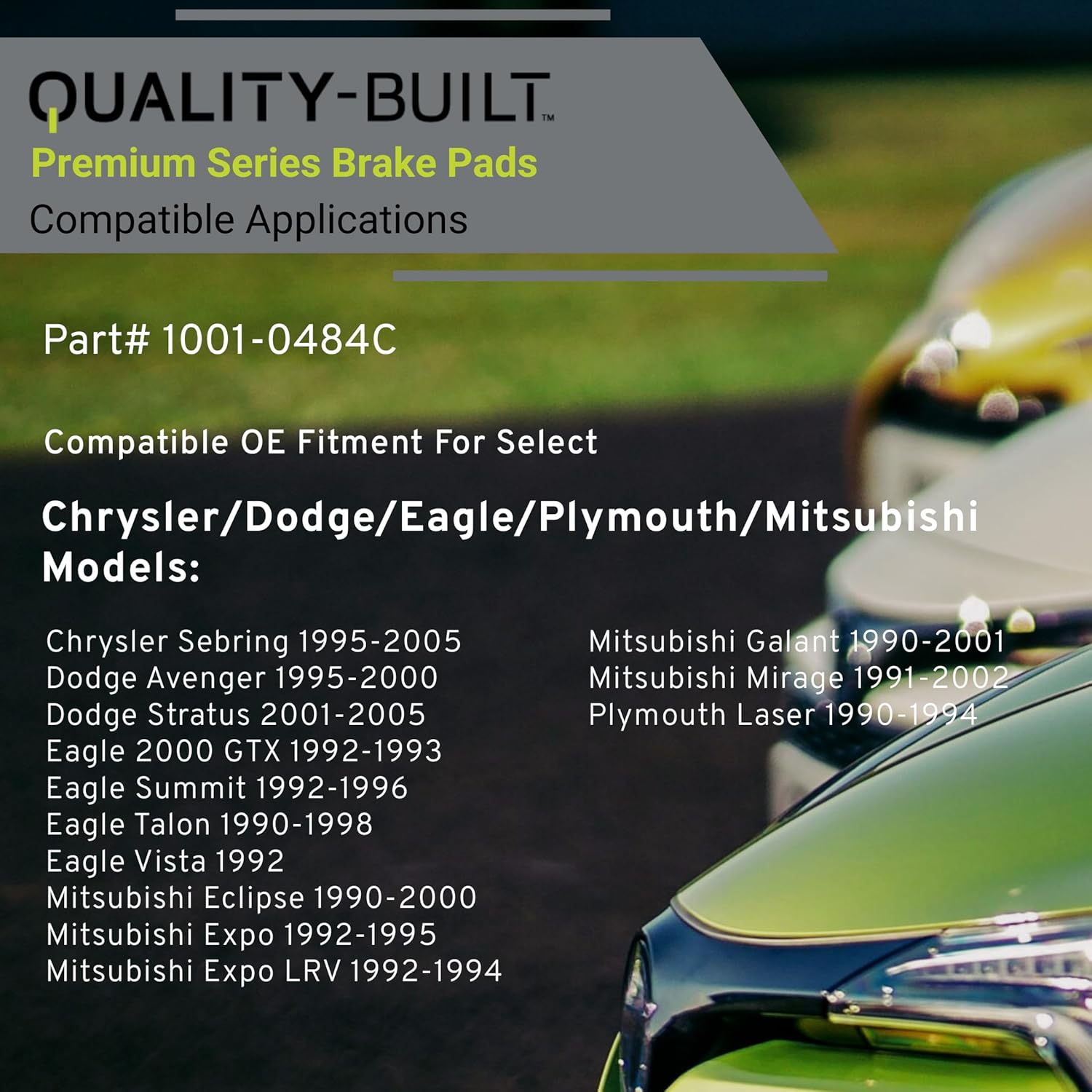 Premium Ceramic Front Brake Pads (1001-0484C) Compatible with 1990-2005 Chrysler/Dodge/Eagle/Mitsubishi/Plymouth (2000 GTX/Avenger/Eclipse/Expo/Expo LRV/Galant/Laser/Mirage/Sebring)