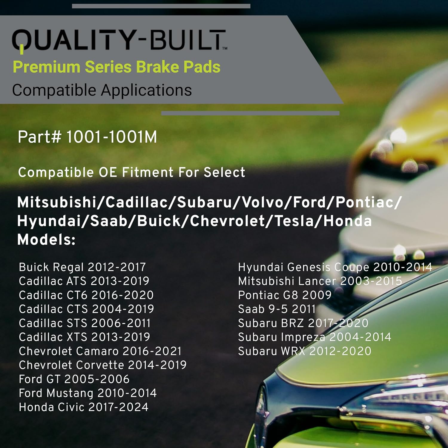 Premium Semi-Metallic Front Brake Pads (1001-1001M) Compatible with 2003-2024 Cadillac/Chevrolet/Ford/Honda/Subaru/Toyota (ATS/BRZ/Camaro/Civic/Corvette/CT6/CTS/Mustang/WRX & More)