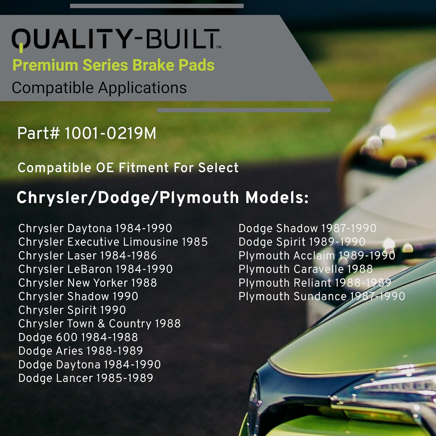 Premium Semi-Metallic Front Brake Pads (1001-0219M) Compatible with 1984-1990 Chrysler/Dodge/Plymouth (600/Acclaim/Aries/Caravelle/Daytona/Executive Limousine/Lancer/Laser/LeBaron)