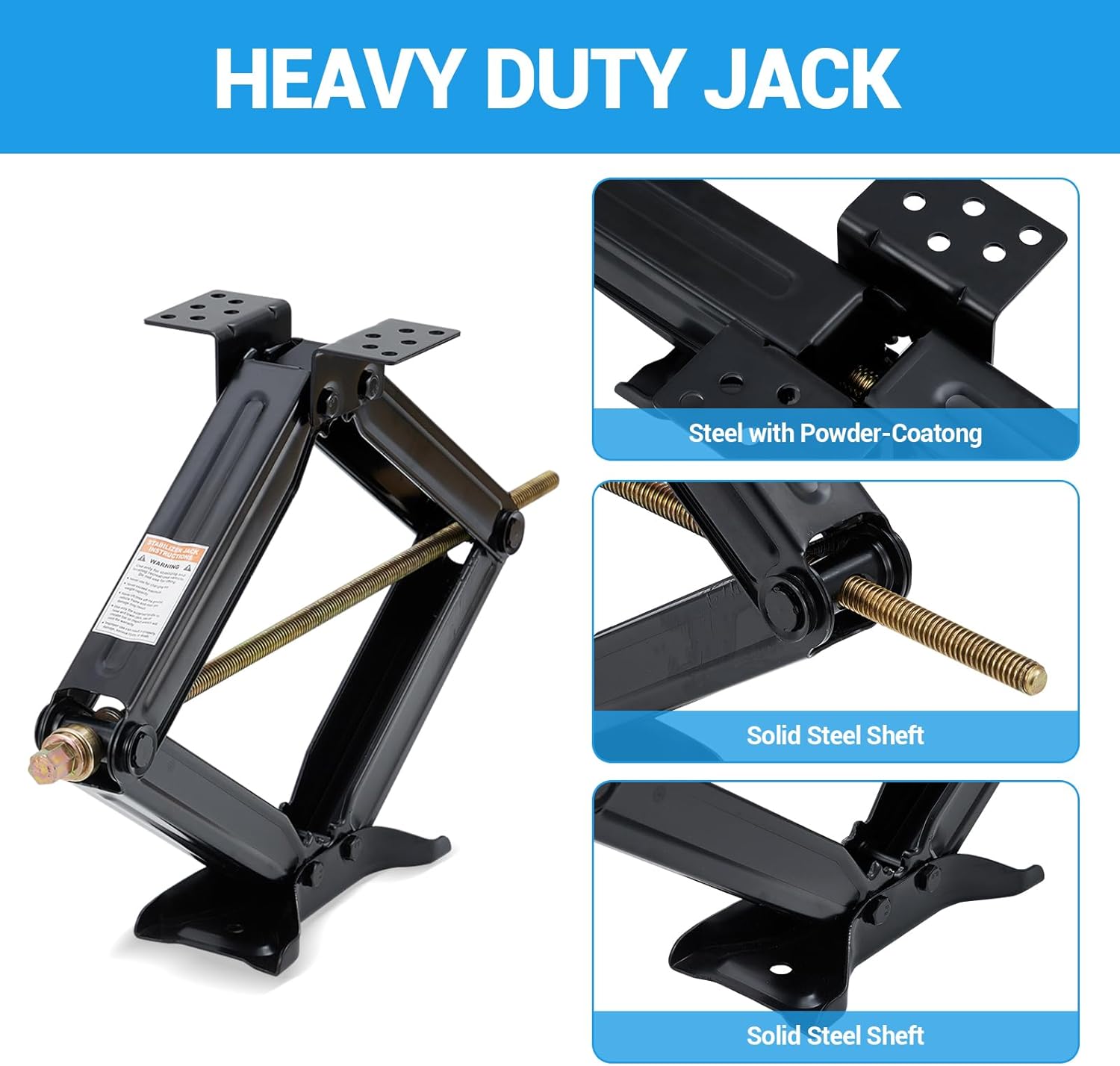 - Fast, Tool-Free Operation: Featuring a built-in crank handle, these scissor jacks for RV allow for easy, quick adjustments—no extra tools required. For ultimate convenience, use a power drill (not included) for effortless lifting and lowering