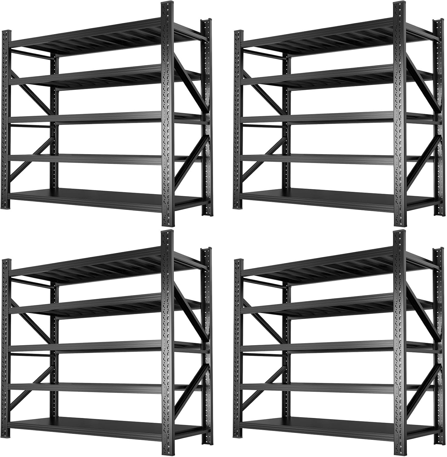 Metal Garage Shelving Heavy Duty, 5-Tier Adjustable Wire Storage Garage Shelves, 8000 LBS Loads Industrial Shelving Units for Garages, Warehouses, Kitchen, Black, 59" W x 24" D x 71" H,4 Pack