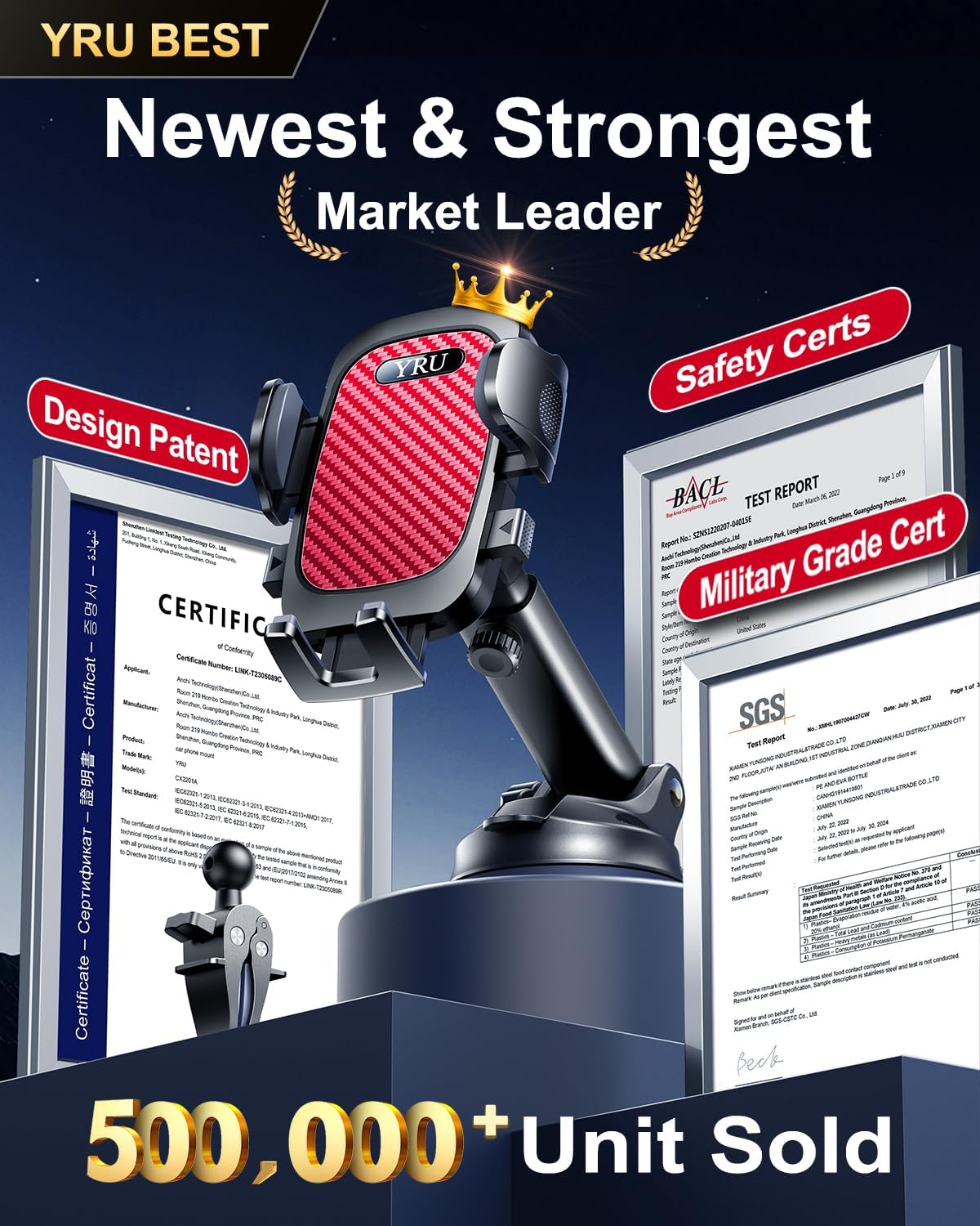 - ใTrue Military-Grade Certified, 2025 Ultimate Car MountใSince 2010, YRU has been devoted to R&D High-end Car Mounts. Over the past 15 years, we listened to millions of users' voices, and rigorously tested to MILITARY GRADE Standards (stability, compatibility, flexibility, security, durability, ease of use). Finally, we made this BEST Version in every aspect. Certified by All Safety Agencies: Military-grade Shockproof, RoHS, CP65, REACH.