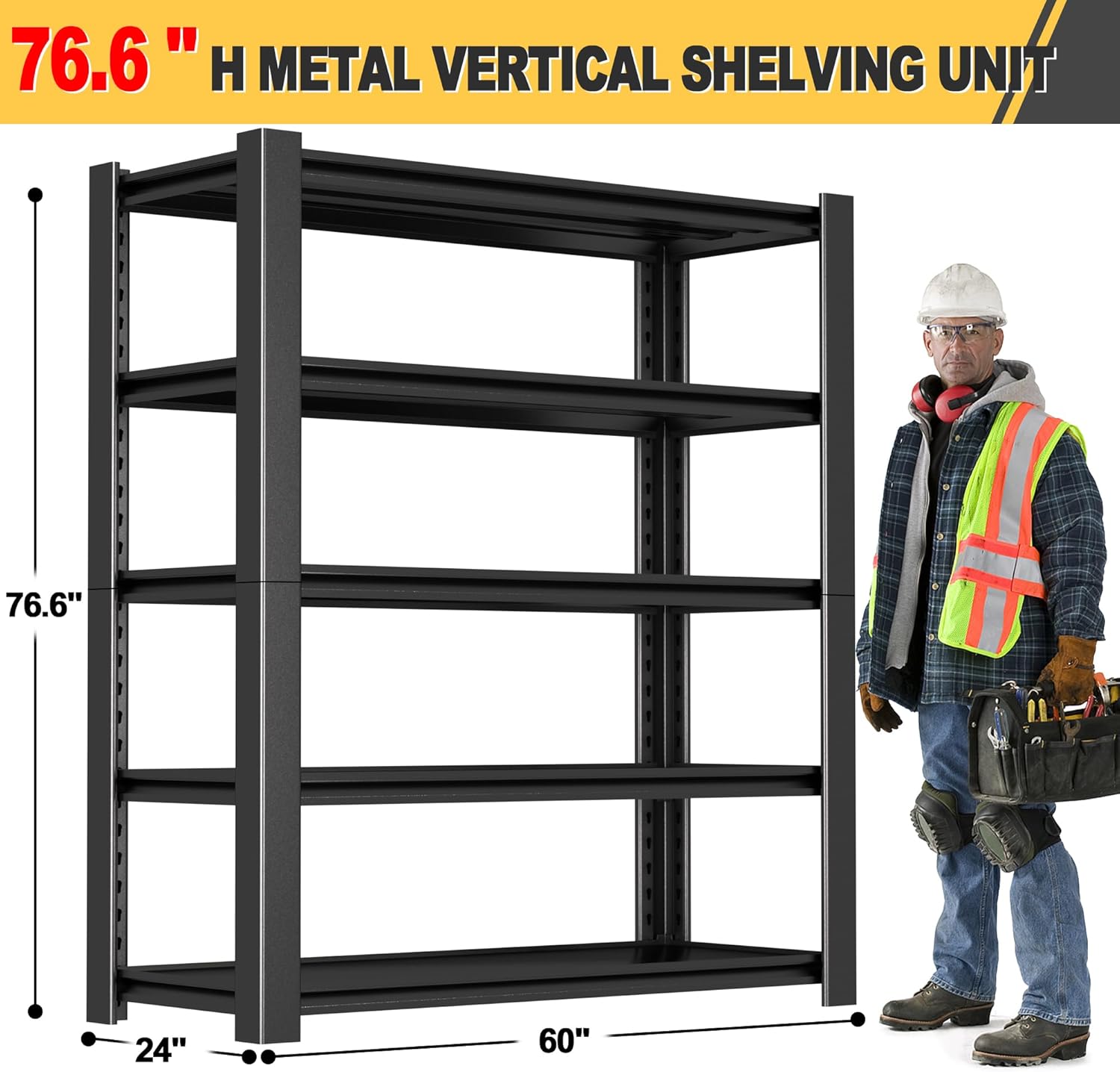 76" H x 60" W x 24" D 5-Tier Heavy Duty Garage Shelving Unit, 3000 LBS Capacity Metal Storage Rack,Adjustable Steel Shelves for Garage, Warehouse, Basement, Pantry, Workshop.1 Pack