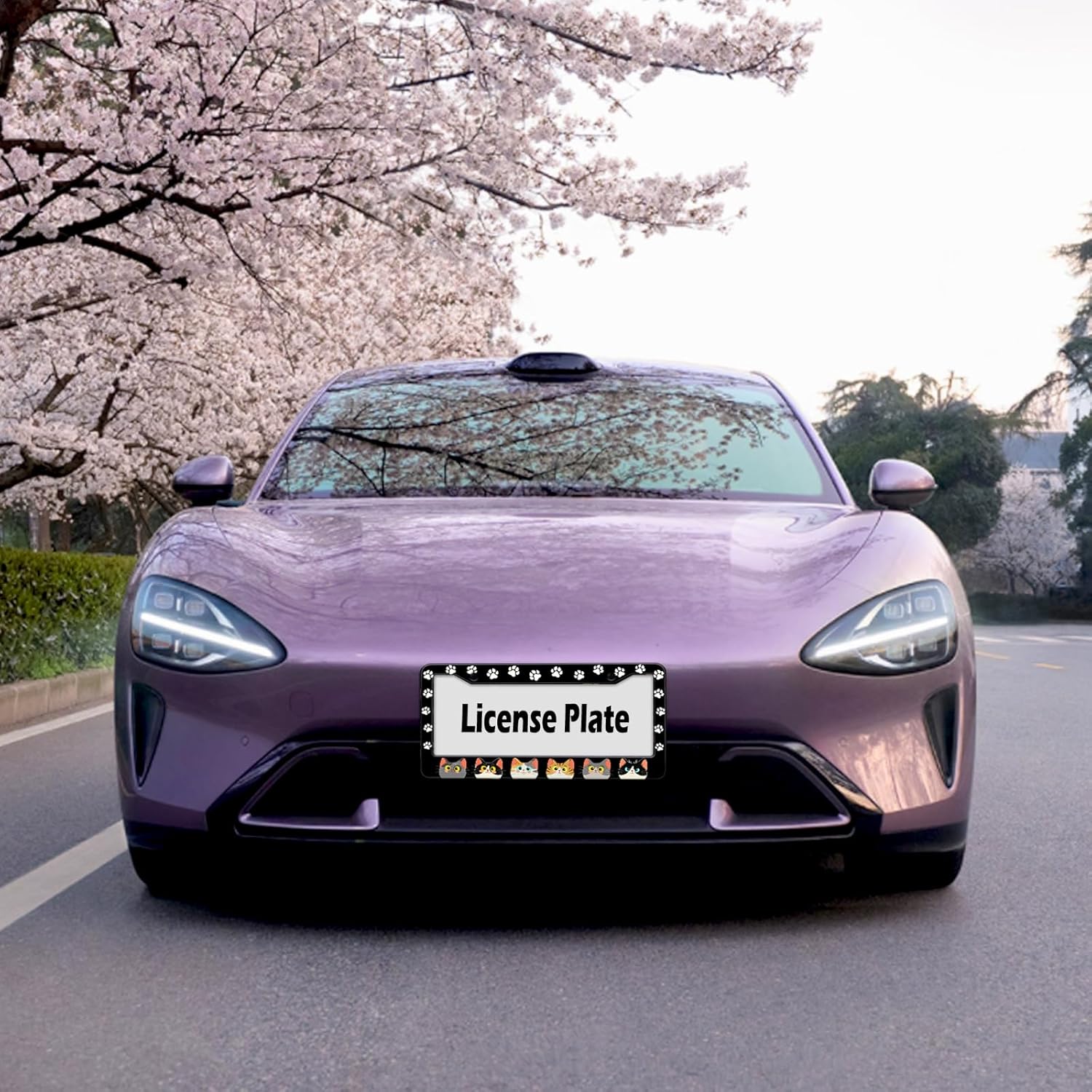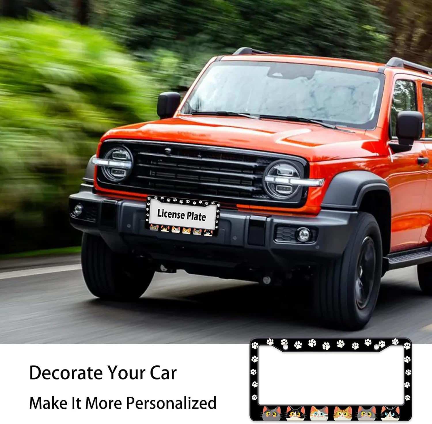 Cats Paw License Plate Frame, Cute Cartoon Cat Animal License Hloder Covers Tag, Metal Aluminum Rustproof Car Accessories for Us Canada Standard Women Men 2 Holes with Screw Caps
