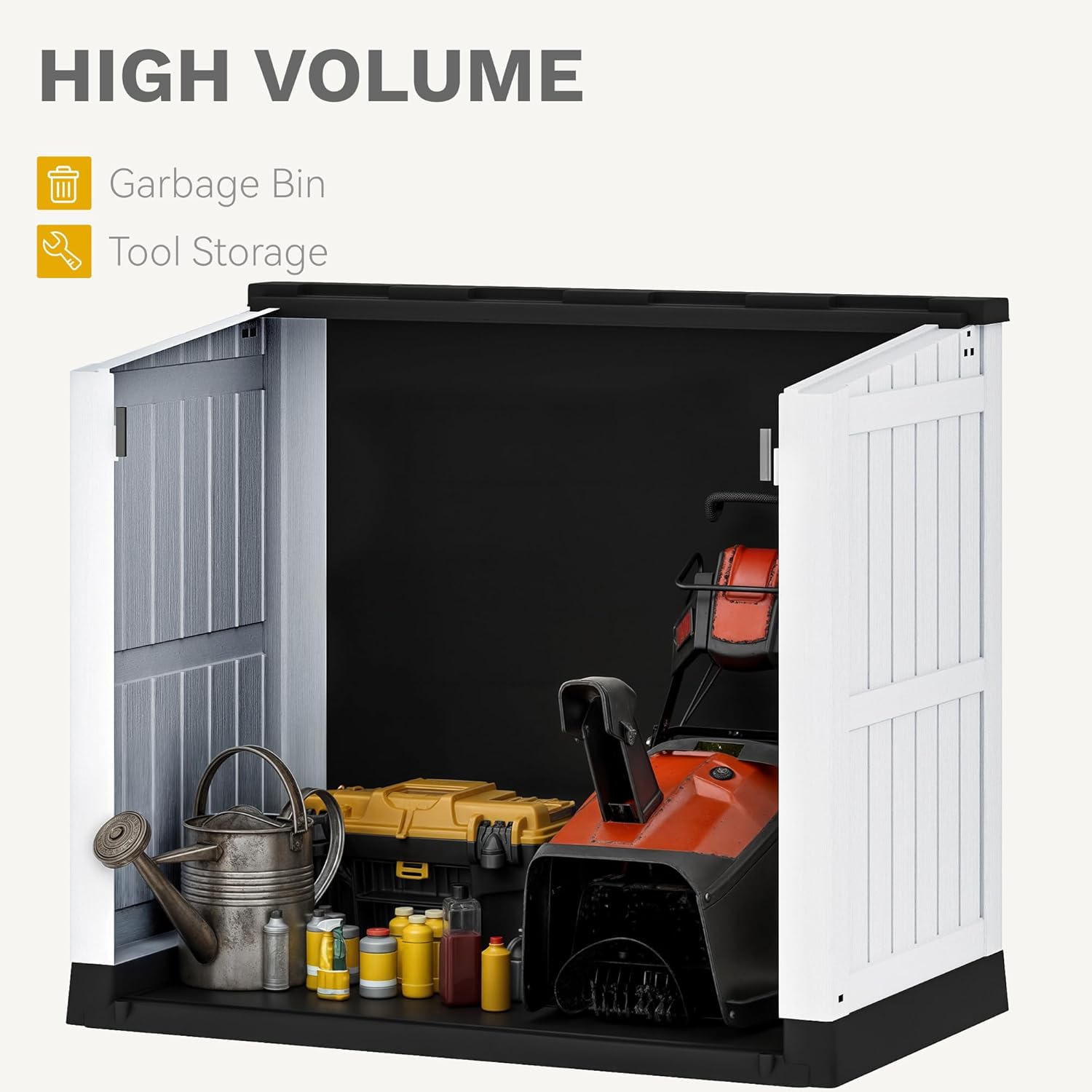 - All-Weather Endurance: Engineered for long-term use, this horizontal shed withstands rain, snow, and sun. The sloped lid design prevents water buildup while the UV-protected surface resists fading, keeping it clean and functional all year round