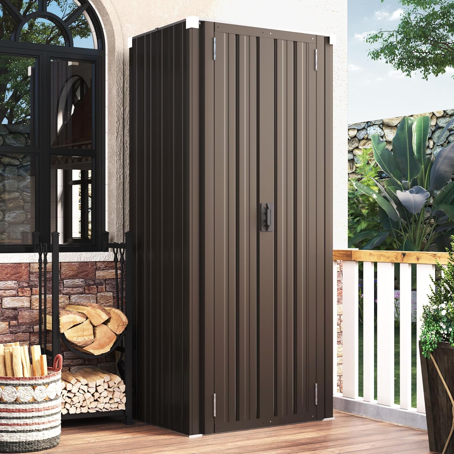 AECOJOY Outdoor Storage Cabinet Waterproof with Shelves, Vertical Tall Garden Outdoor Cabinet, Sheds & Outdoor Storage Clearance Cabinet Weatherproof for Outside in Brown