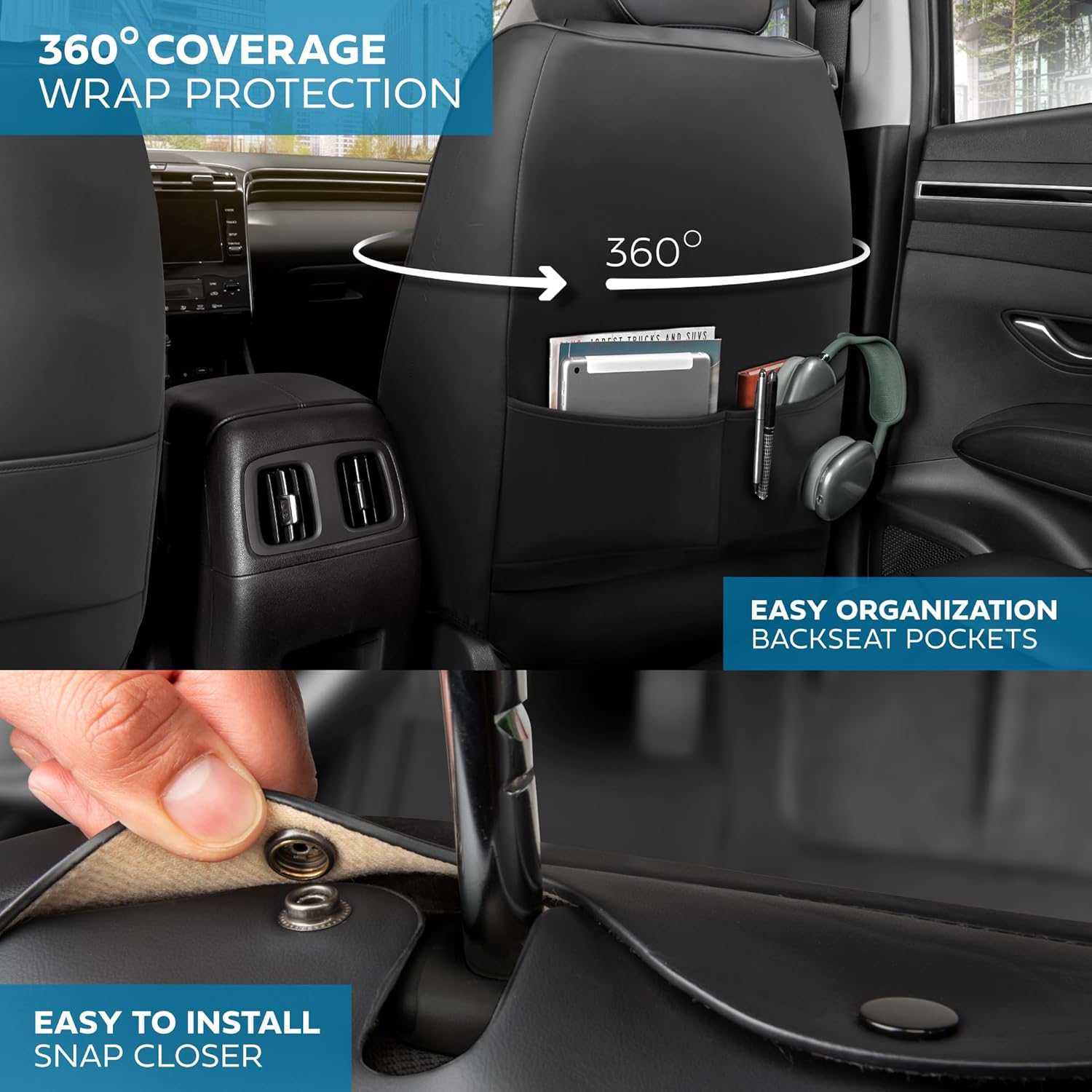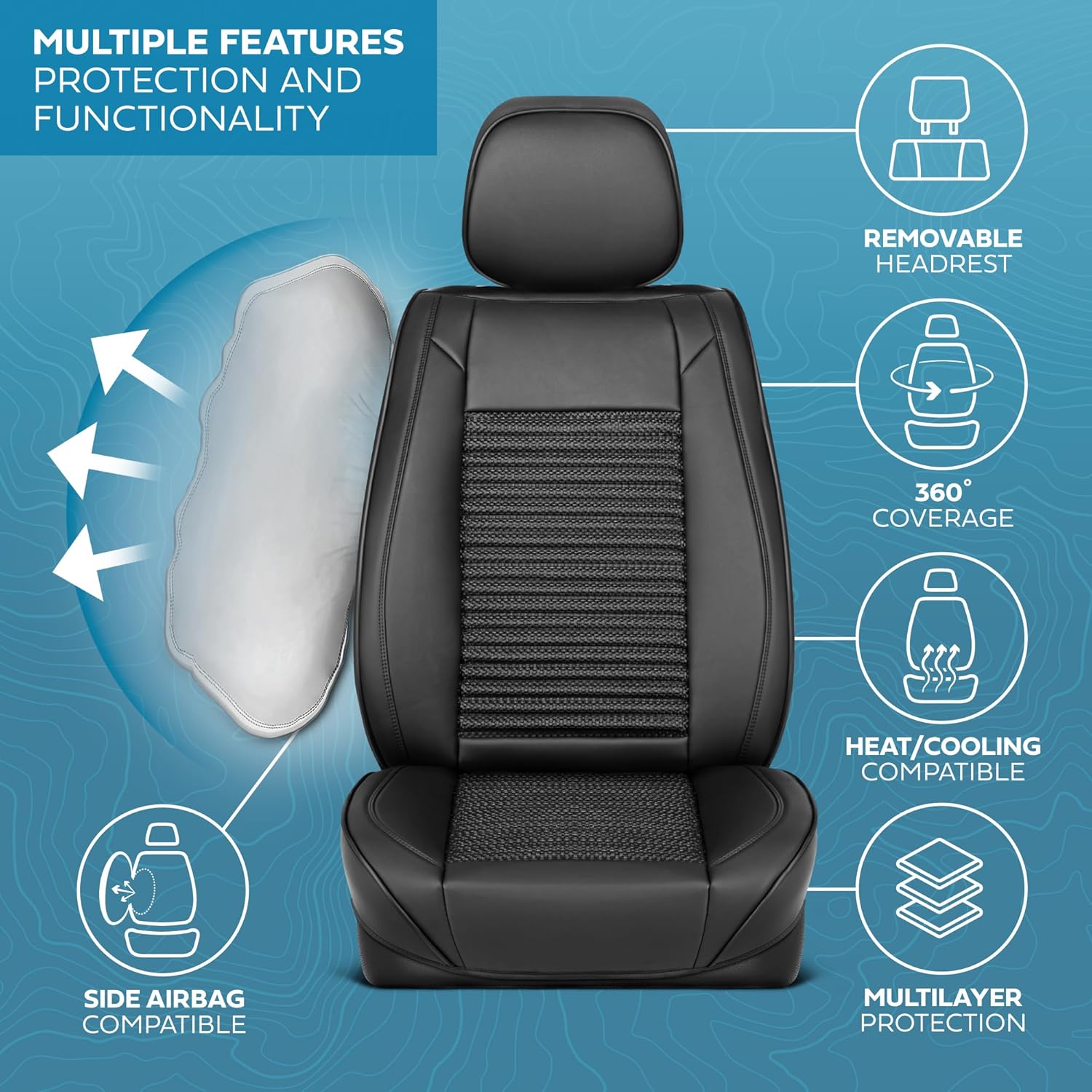 - ULTIMATE PROTECTION: MotorBox faux leather car seat covers offer ultimate protection against spills, stains, dirt, and wear. Designed to shield your seats from daily damage, these covers help maintain the original condition of your car’s interior, ensuring durability and extending the lifespan of your vehicle’s seats. Not just for cars, these are leather seat covers for trucks & SUVs too!