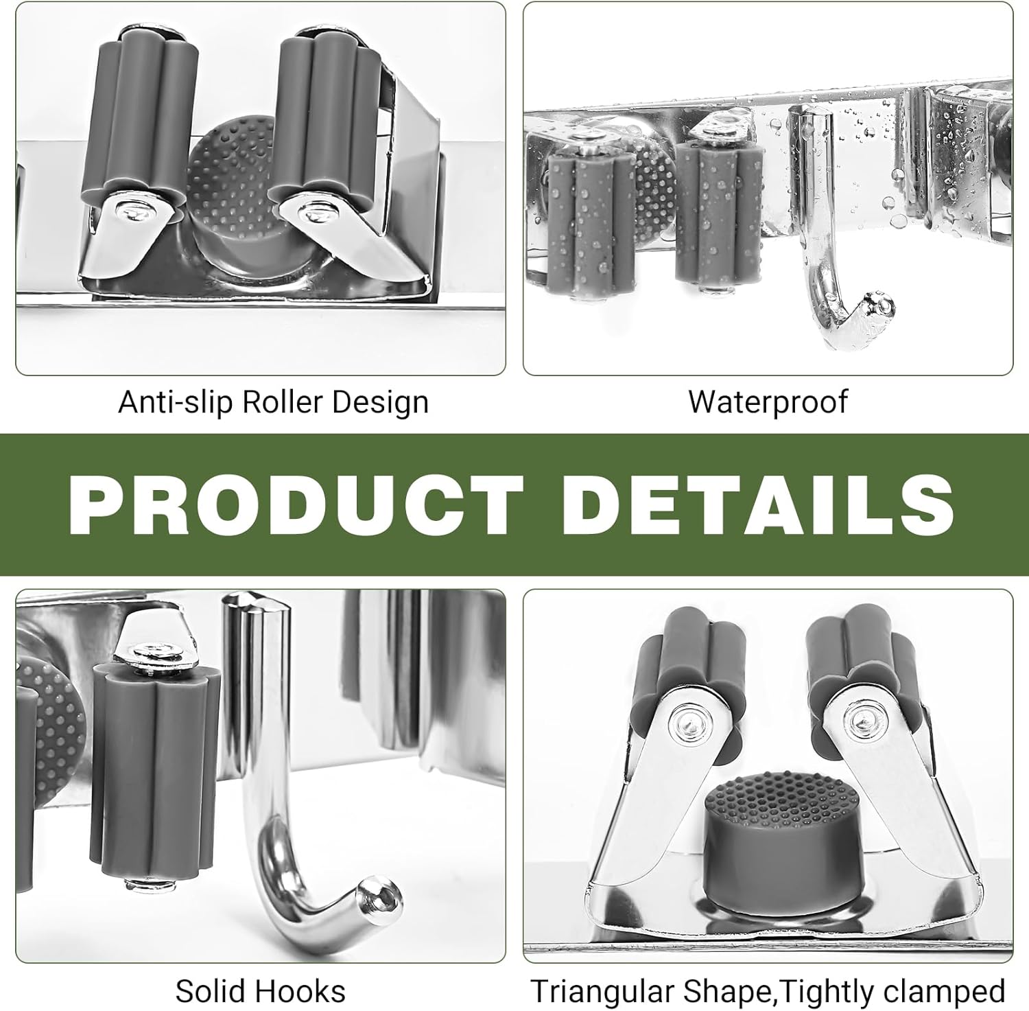 - Space-Saving Design: The wall-mounted broom holder helps you organize and store brooms, mops, and other cleaning tools vertically, freeing up floor space and keeping your home tidy.