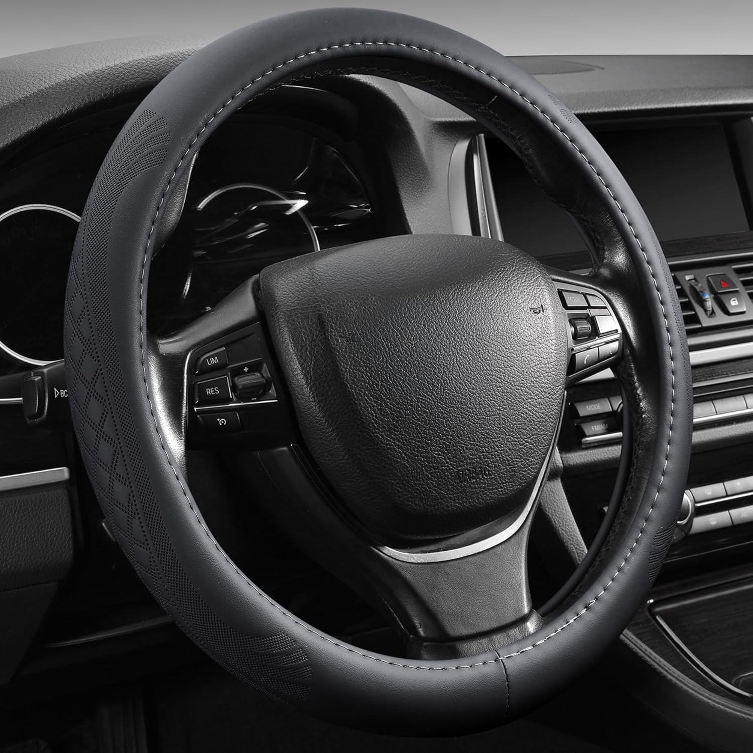 - 【Suitable Size】: Enhance the appearance and feel of your car's interior with our leather steering wheel cover.This steering wheel cover is designed to universally fit wheels ranging from 14.5 to 15 inches.Please measure the size of the steering wheel before purchasing.