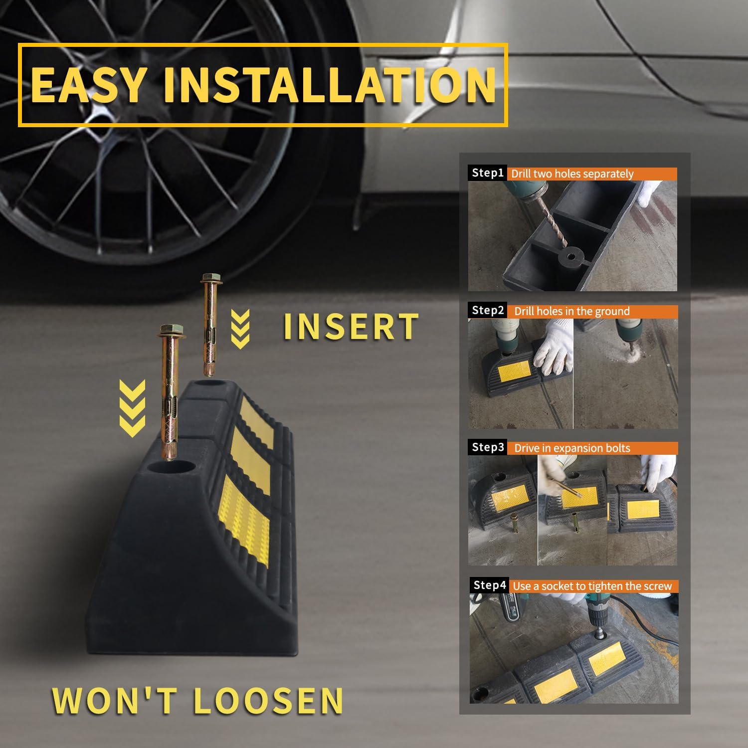 - đ§± ăHeavy-Duty Rubber Constructionă Crafted from robust yet flexible rubber material, this car stopper absorbs impact to protect tires and vehicle chassis, while also promoting consistent and accurate parking alignment.