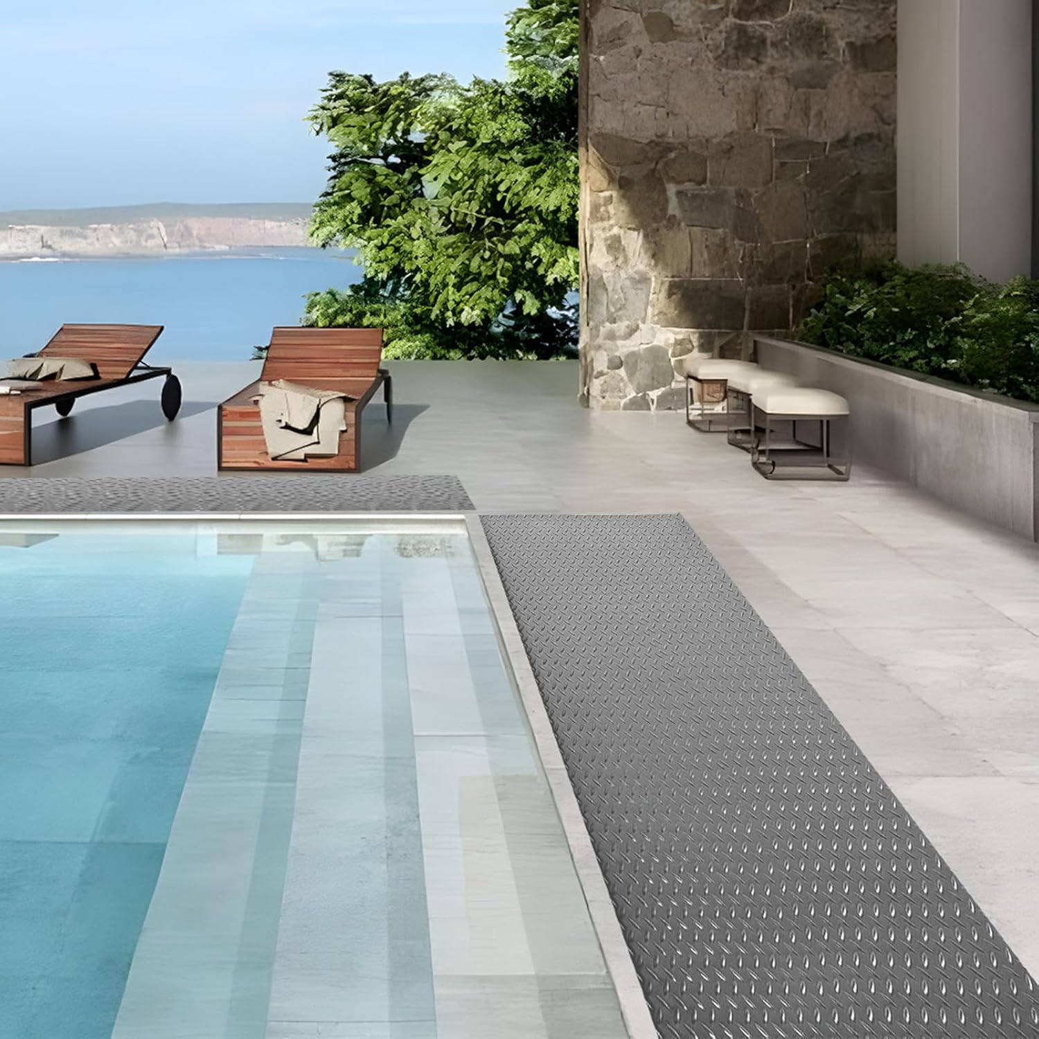 - ☑ Wide Application】Easy to install and keep clean, rubber diamond plate flooring is perfect for garage, warehouse, basement, gym, trailer, front door, kitchen, car mat, golf cart flooring, box liner, stairs, etc.