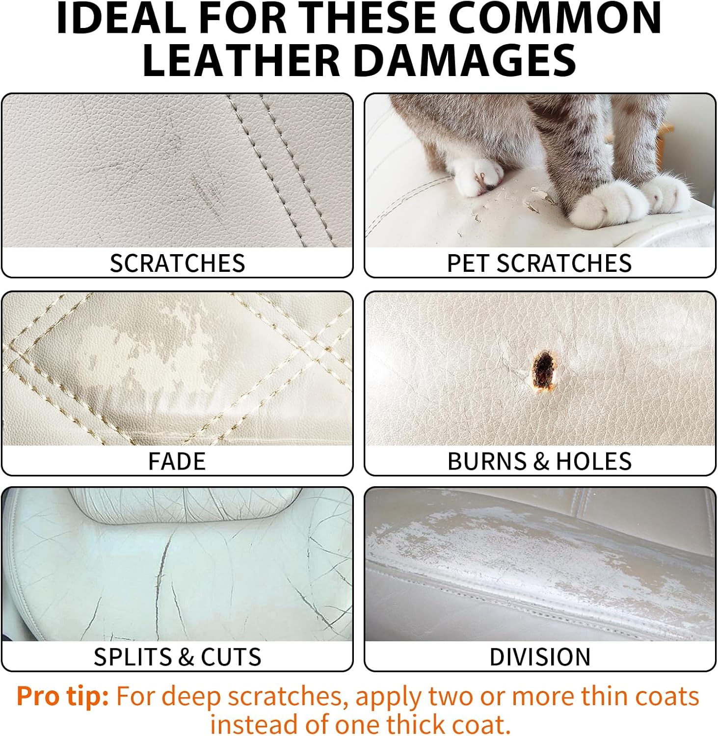 - Vinyl Repair Kit for Furniture:vinyl repair kit is formulated with high-quality, fast-drying liquid adhesive. It effectively repairs scratches, cuts, holes, tears, cracks, marks, and pet damage (cats/dogs) on leather surfaces.