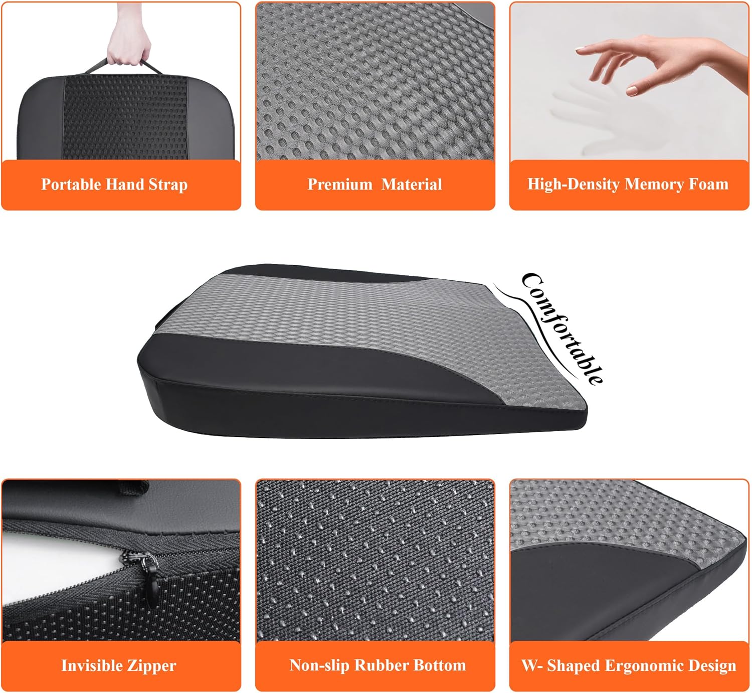 - Upgraded Car Seat Cushion - Classic colors, stylish patterns, and ergonomic design give this car seat cushion for pad for car driver seat a sleek and professional look. We use premium PU leather, which is breathable, durable, and easy to clean. Comfort is everywhere, you can use our seat cushion for truck driver, office chairs, wheelchairs, etc