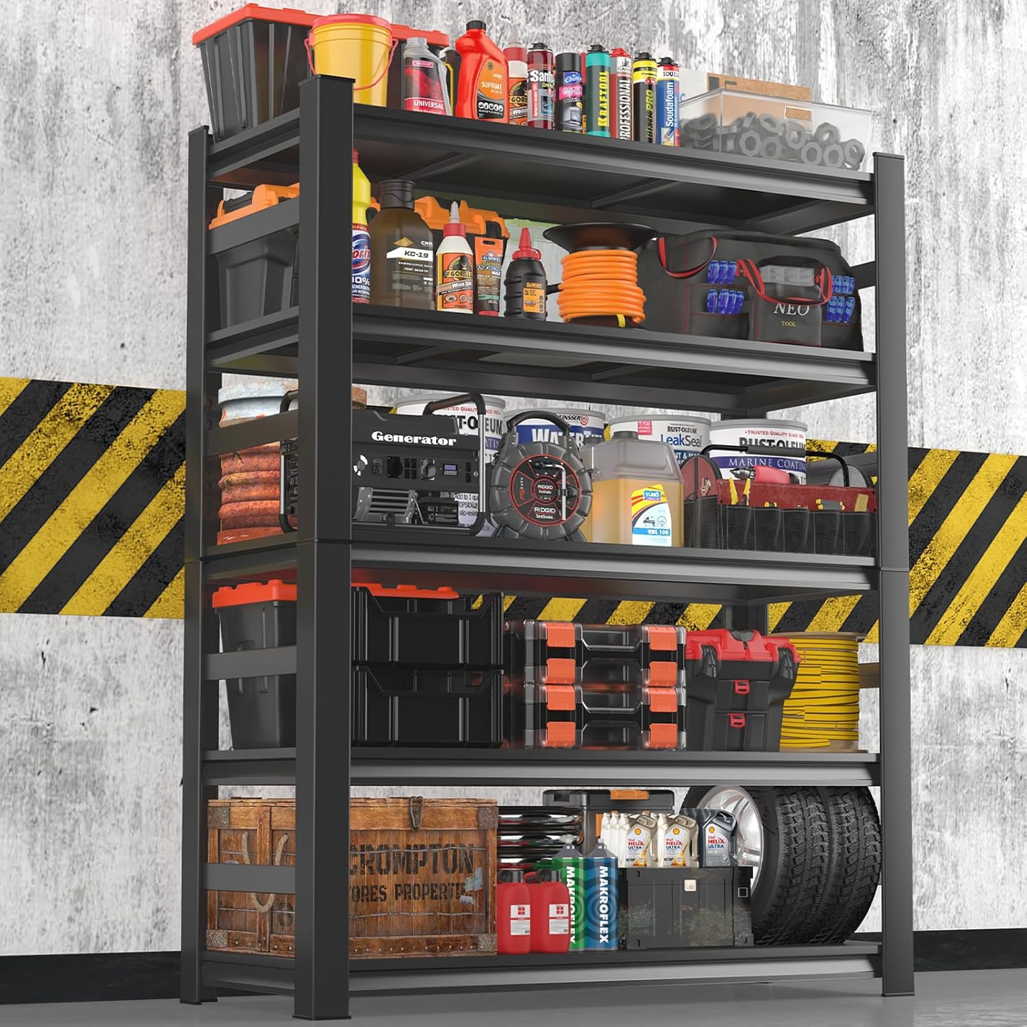 87" H Garage Shelving 3000LBS Capacity Heavy Duty Storage Shelves, Adjustable 5 Tier Metal Industrial Shelf for Kitchen, Utility Room, Warehouse and Basement,24" Dx47 Wx87 H, Black
