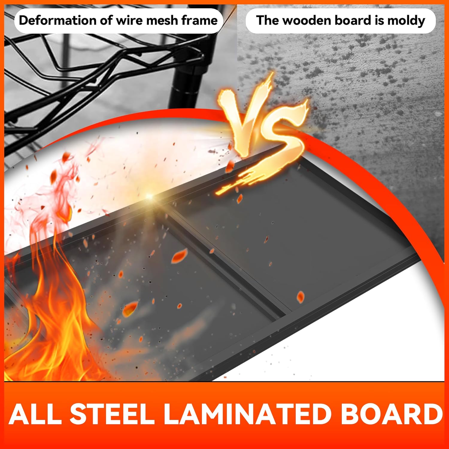 - ăSuperb Weight CapacityăEngineered with industrial-grade cold-rolled steel for superior strength and weldability, this heavy-duty shelving unit outperforms wooden racks prone to warping or moisture damage. Reinforced crossbars and stabilizing braces ensure unwavering stability, even under heavy loadsâno wobbling or bending over time