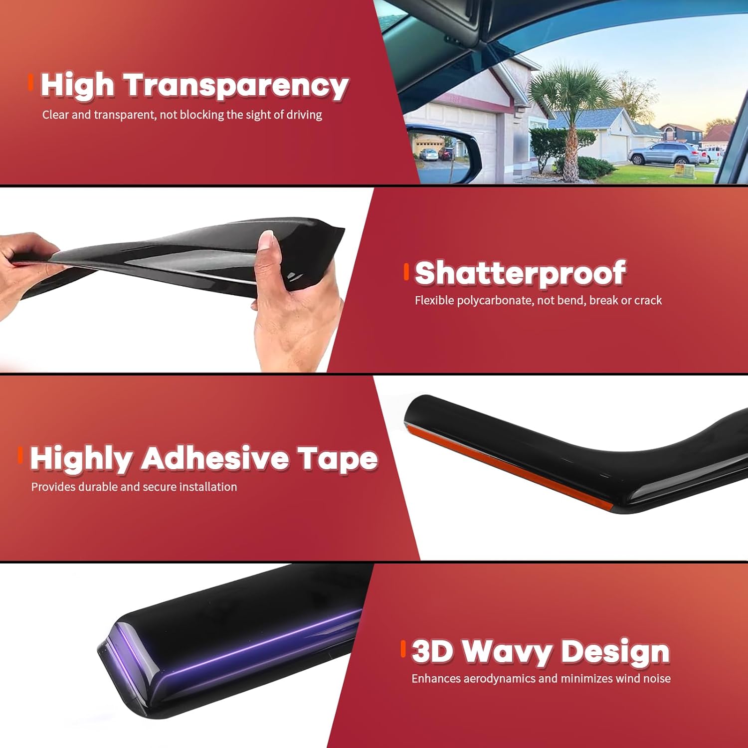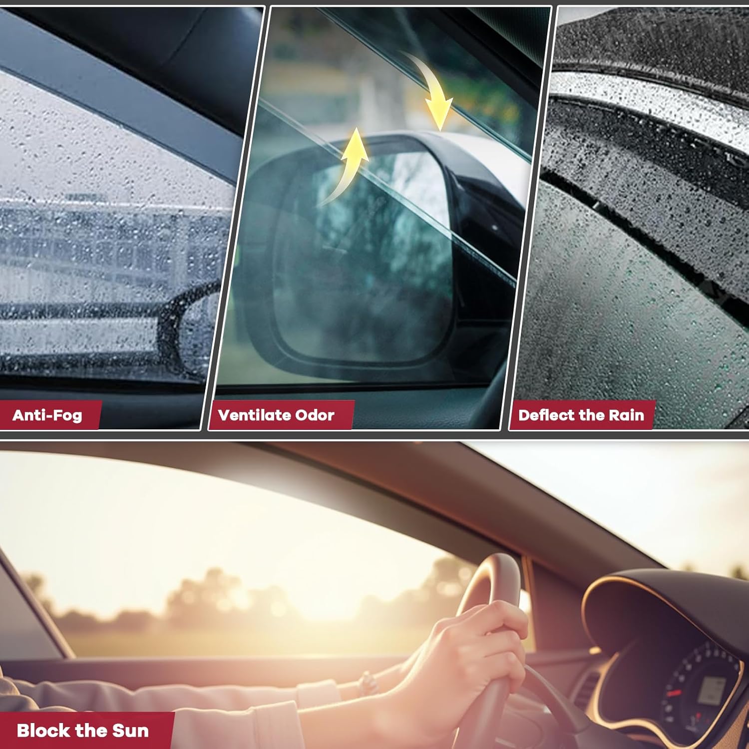 - ăImproved Ventilation and Air FlowăAllows fresh air to circulate through open windows while keeping the rain out or reduces heat. Reduce mirror and window fogging; reduce sun glare through side window. Dark Smoke translucent color will not obstruct the driver's view while driving