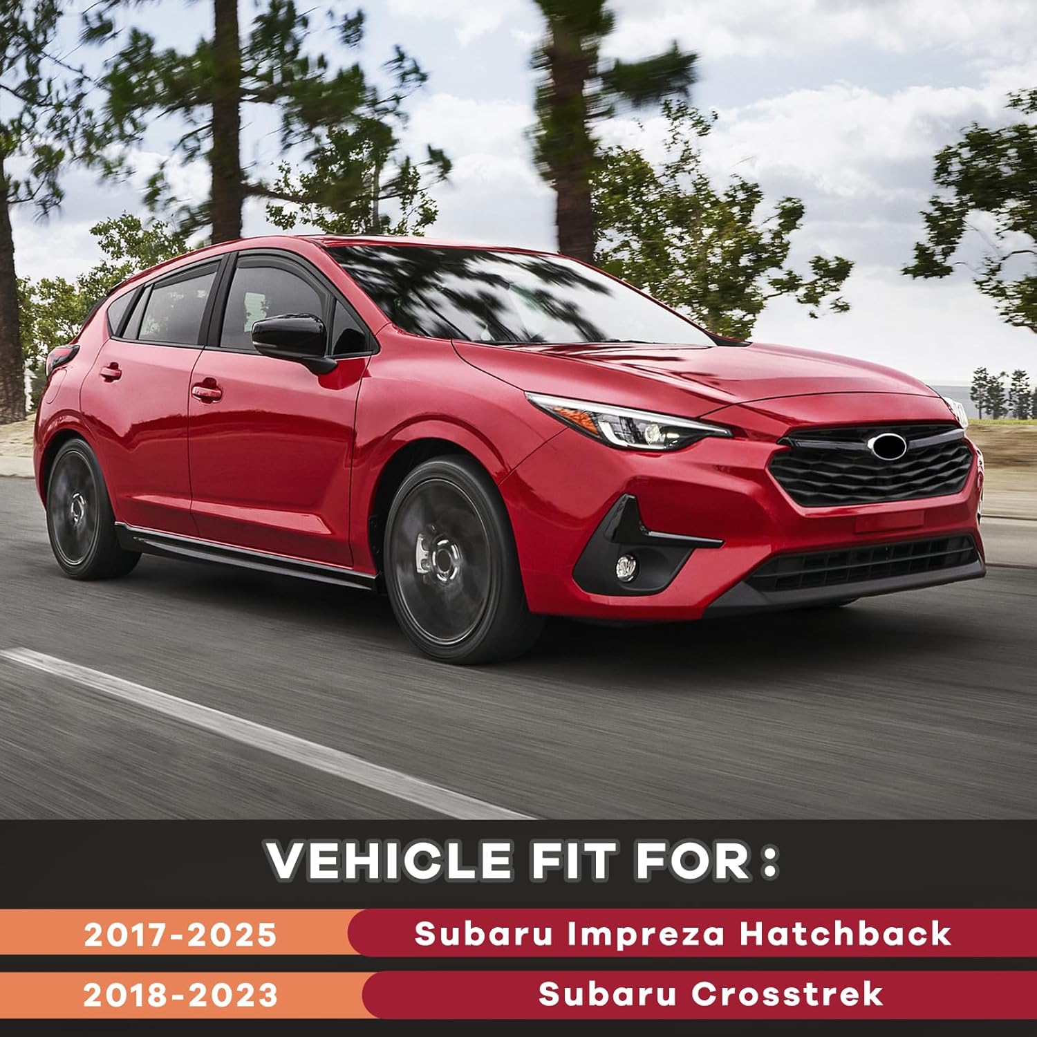 - ăVehicles FitmentsăCHYKORLA window rain guards vent shades compatible with 2018-2023 Subaru Crosstrek, 2017-2025 Subaru Impreza Hatchback (EXCLUDES Sedan). Please check your vehicle's compatibility to ensure proper fitment