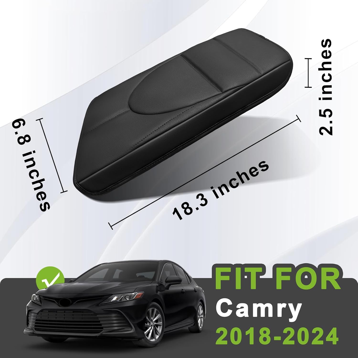 Muslogy Center Console Armrest Cover Compatible with Toyota Camry 2018-2024 Comfort Armrest Pad Arm Rest Cushion Vegan Leather Protector Regular Thick