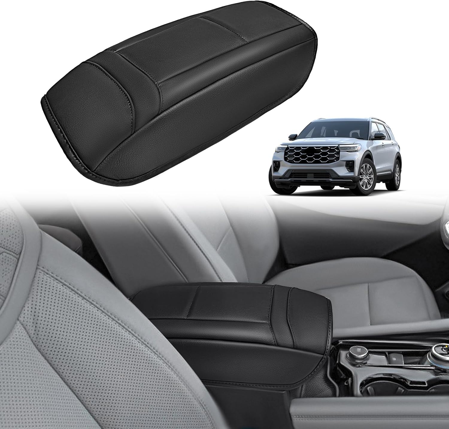 Muslogy Center Console Armrest Cover Compatible with Ford Explorer 2020-2024 2025 Comfort Armrest Pad Arm Rest Cushion Vegan Leather Protector Regular Thick