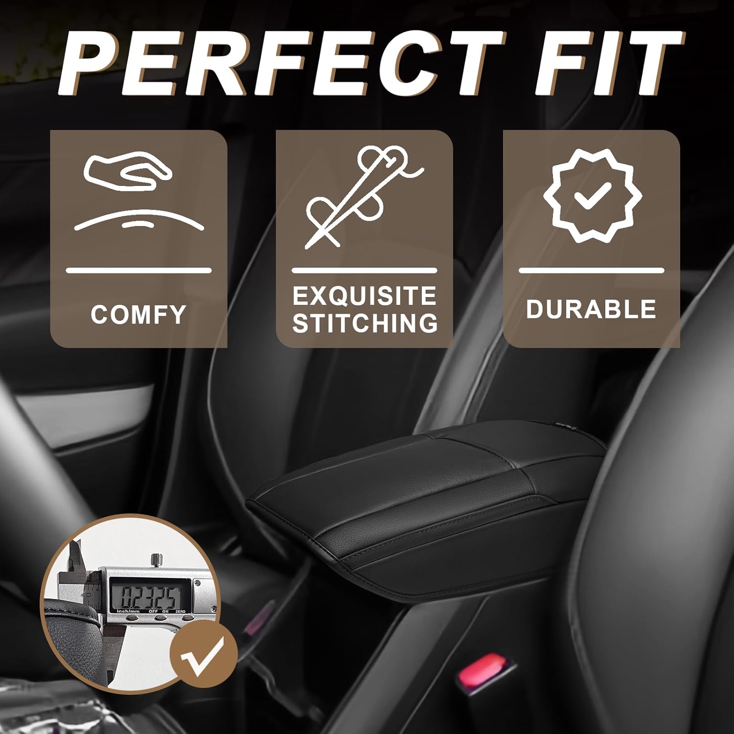 - Unique Design: Designed according to the OEM element to make it match your vehicle perfectly and even better. Our armrest cover is crafted with high-quality Vegan Leather and an extra layer of foam, which is skin-friendly, breathable and soft.