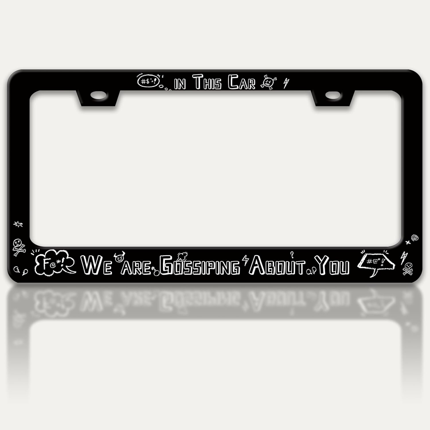 in This Car We are Gossiping About You License Plate Frame Funny Text License Plate Holders Stainless Steel Auto Accessory Bracket 2 Hole with Screws Universal Us Car License Plate Frames 6x12 Inch