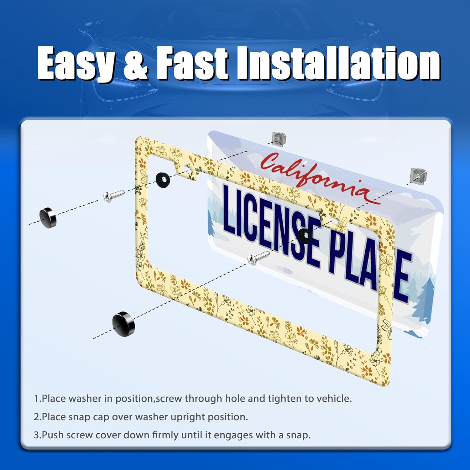 Yellow Wild Flowers License Plate Frame Colorful Flower Floral License Plate Stainless Steel Funny License Plate Holder for Men Women Universal Car Accessories Decoration 12.3" x 6.3"