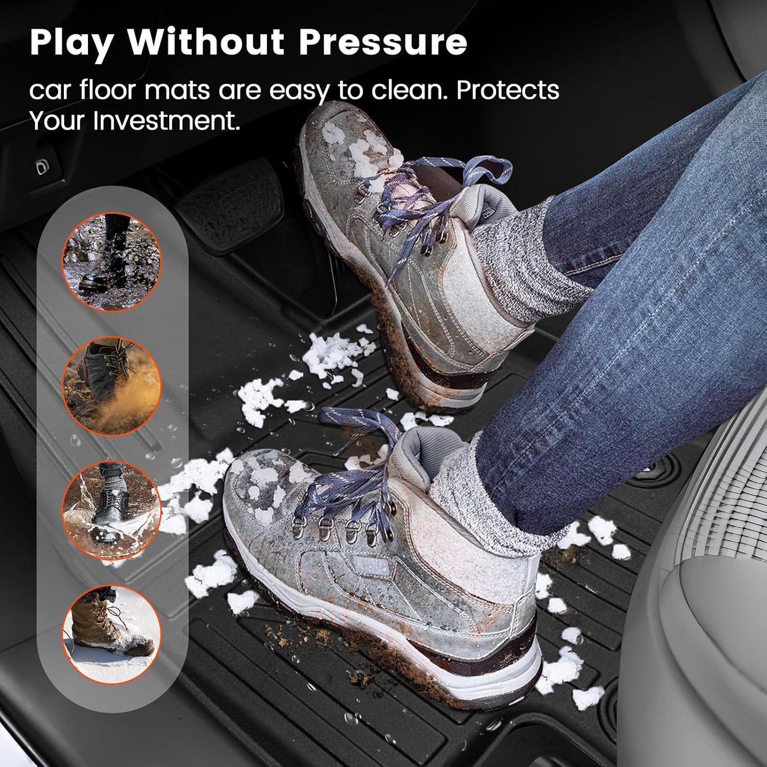 - "ăAll-Weather Protectionă 100% Waterproof TPE material prevents spills, mud, and snow from damaging your car's interior. Keep your car clean.Deep grooves trap dirt/liquid better than generic mats.Perfect for everyday drives, pet transport, family trips, and off-road excursions."