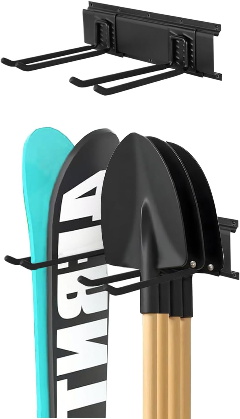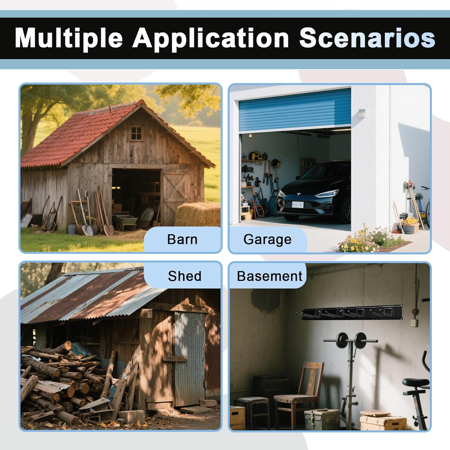 - SPACE-SAVING & NOISE-REDUCING DESIGN:Utilizes unused wall space to free up floors for parking or projects. Rubber-coated hooks minimize rattling and protect tools, while the sleek, low-profile design blends with any decor—say goodbye to messy piles and hello to a durable, streamlined storage system.