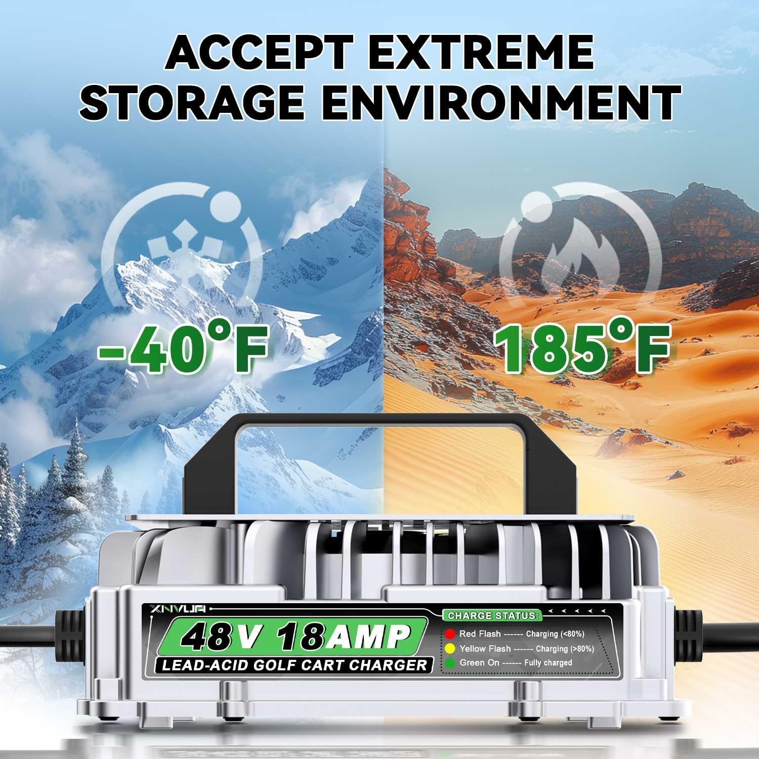 - 【Vortex Heat Dissipation Design】The 48 volt ezgo golf cart battery charger comes with a cooling fan and is designed with a vortex around it, which greatly increases the cooling efficiency and enables it to work stably.