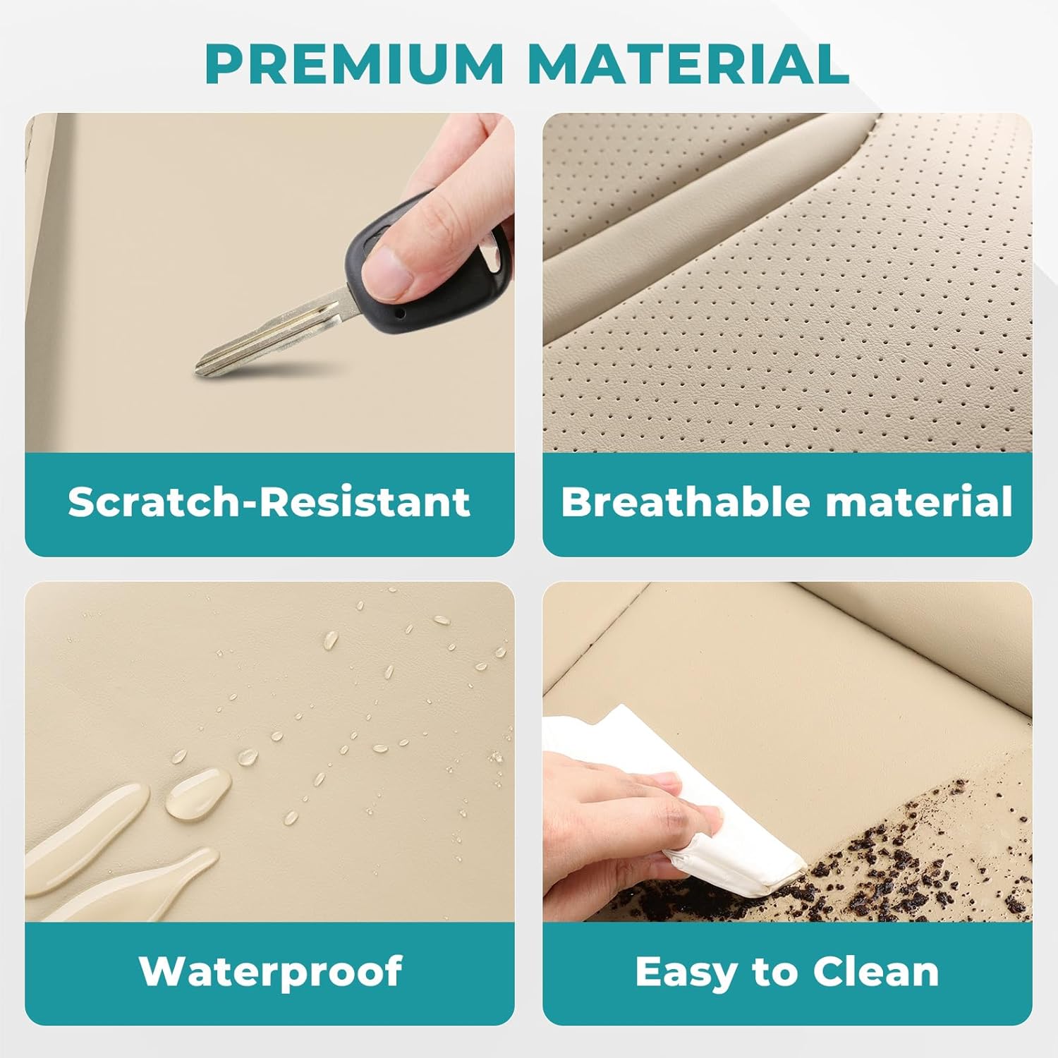 - 【Universal Fit】This leather car seat covers full set includes 2 front and 3 rear covers, designed to fit most vehicles—sedans, SUVs, hatchbacks, trucks, and pickups. Compatible with top brands like Toyota, Honda, Nissan, Ford, Jeep, Kia, Chevy, Lincoln, Lexus, Dodge, Mercedes-Benz, Hyundai, Buick, Volkswagen, Cadillac, Subaru, Infiniti, Mazda, GMC, Volvo, Suzuki, Jaguar, Acura, and more.