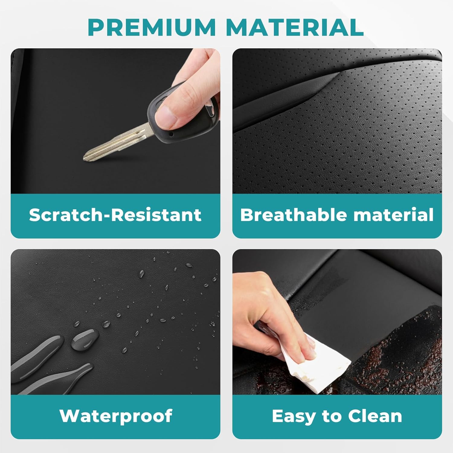 - 【Waterproof & Durable Protection】These waterproof car seat covers feature a four-layer design that resists spills, stains, and scratches. Easy to clean and built to last, they keep your car seats looking new.