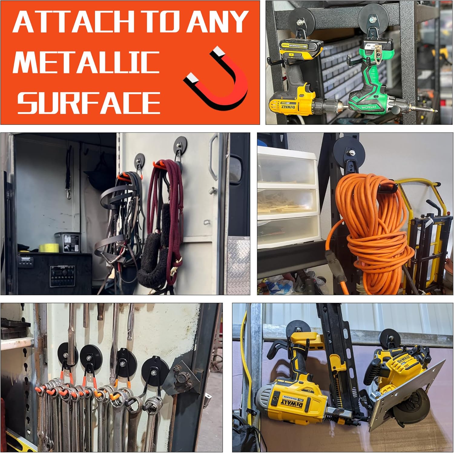 - [4 Pack Magnetic Hooks]: Strong Magnetic Hooks, flat and simple design, don‘t take up space,in line with modern decoration style.It's an ideal choice for homes, kitchens, warehouses and other scenes.This perfect tool hanger is quite suitable for your home organization