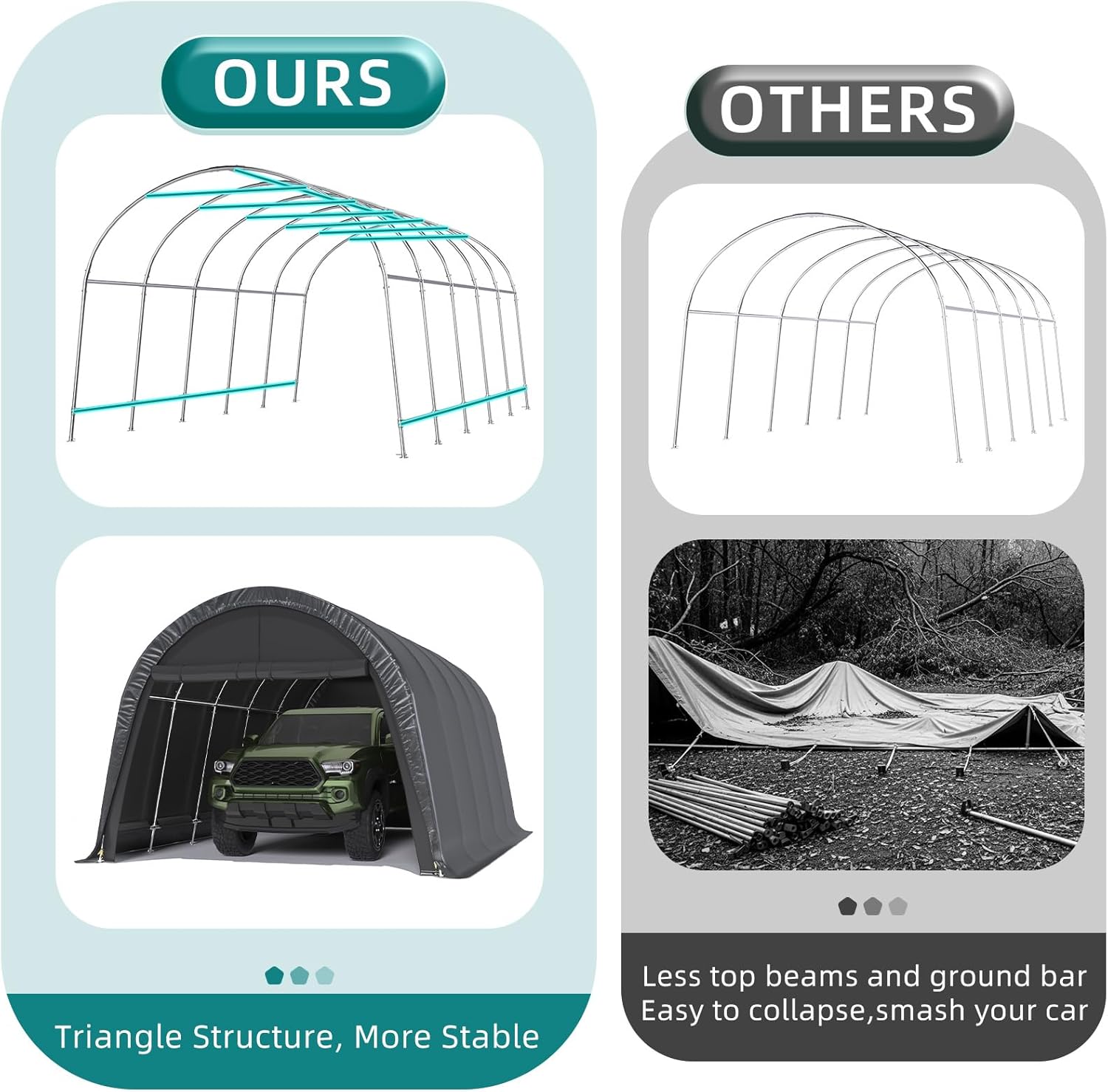 - 【Round Style Roof & Anti-Snow】: The top is designed with a Round Style shape, which avoids standing water and snow and increases the service life of the car garage