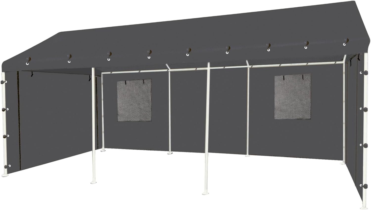 Sidewall Panel with Mesh Windows and Elastic Ball Bungees, for 10x20 FT or 12x20 FT Garage Party Tent Shelter - Gray, One Sidewall Panel Only