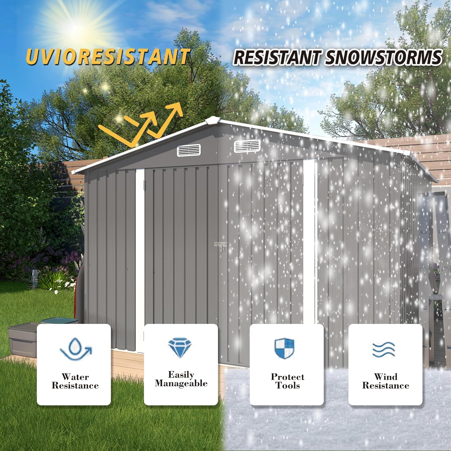 - MULTI-APPLICATION OUTDOOR SHED: The metal shed can better store your tools such as lawn mowers,bicycles,BBQ grills,and more. You also can use this storage shed as a pet shelter or greenhouse. Stay organized effortlessly.