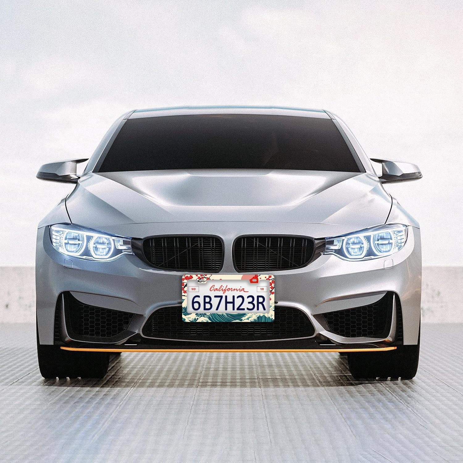 Waves Cherry Blossom License Plate Frames - 2 Pcs Set 2 Holes Stainless Steel Metal Auto Car Accessories Decoration License Plate Frame Cover Size 6.3" x 12.2" Fit US Vehicles for Women Men Gift