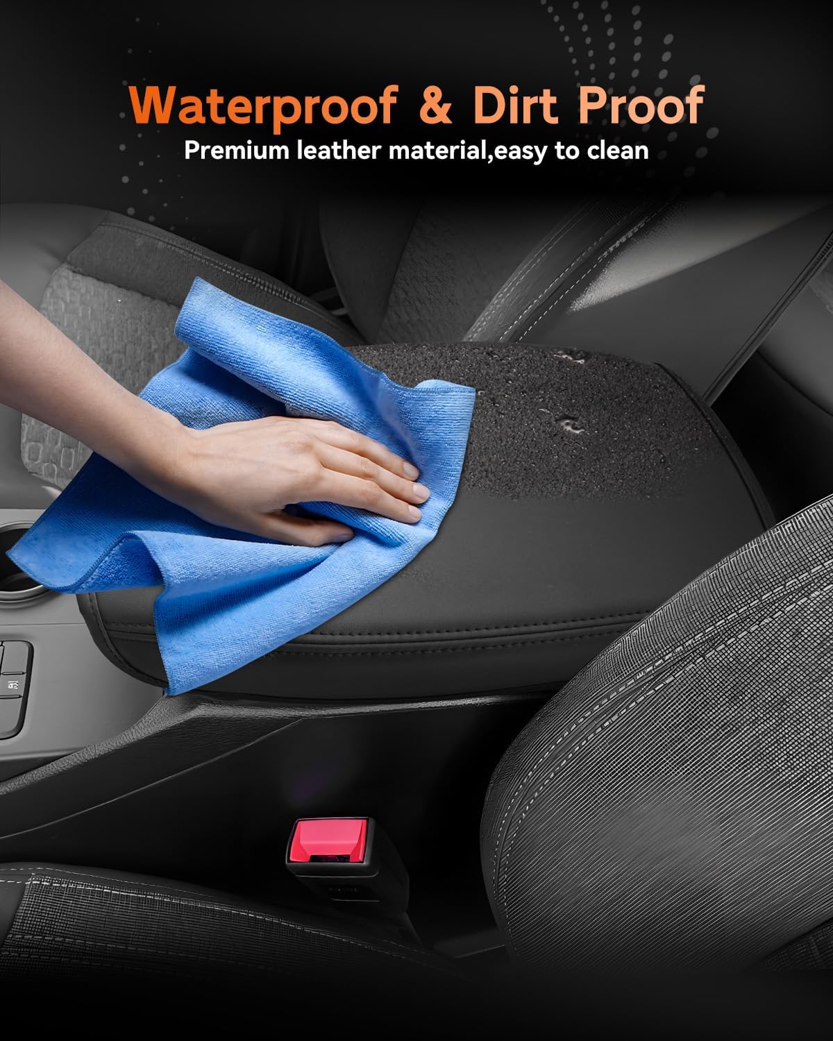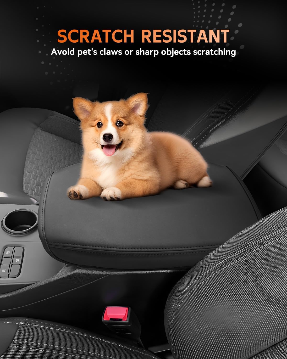 - [Excellent Scratch Resistance] The car center console mat is made of high quality PU microfiber leather, thick enough to keep out pet paws, dust and sticky fingers. The surface is waterproof, wear-resistant and durable, breathable, light weight and easy to wipe clean of dirt.