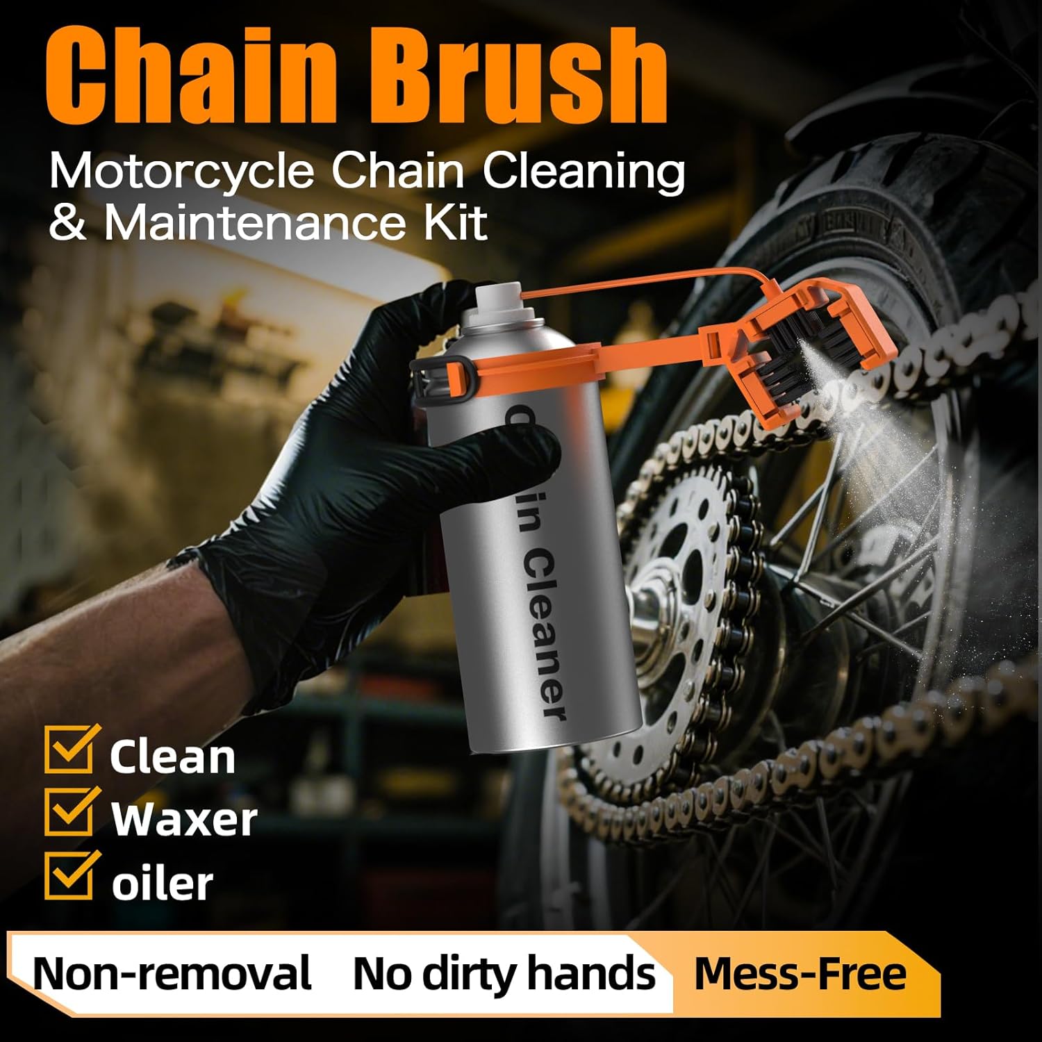 - 270° Motorcycle Chain Brush for Deep Cleaning - The included motorcycle chain brush features 270° bristles to scrub 3 sides of the chain at once, tackling grime in links and sprockets. Whether youâre prepping for a ride or post-adventure cleanup, this chain cleaner ensures thorough, no-miss cleaning for all motorcycle and dirtbike chains.