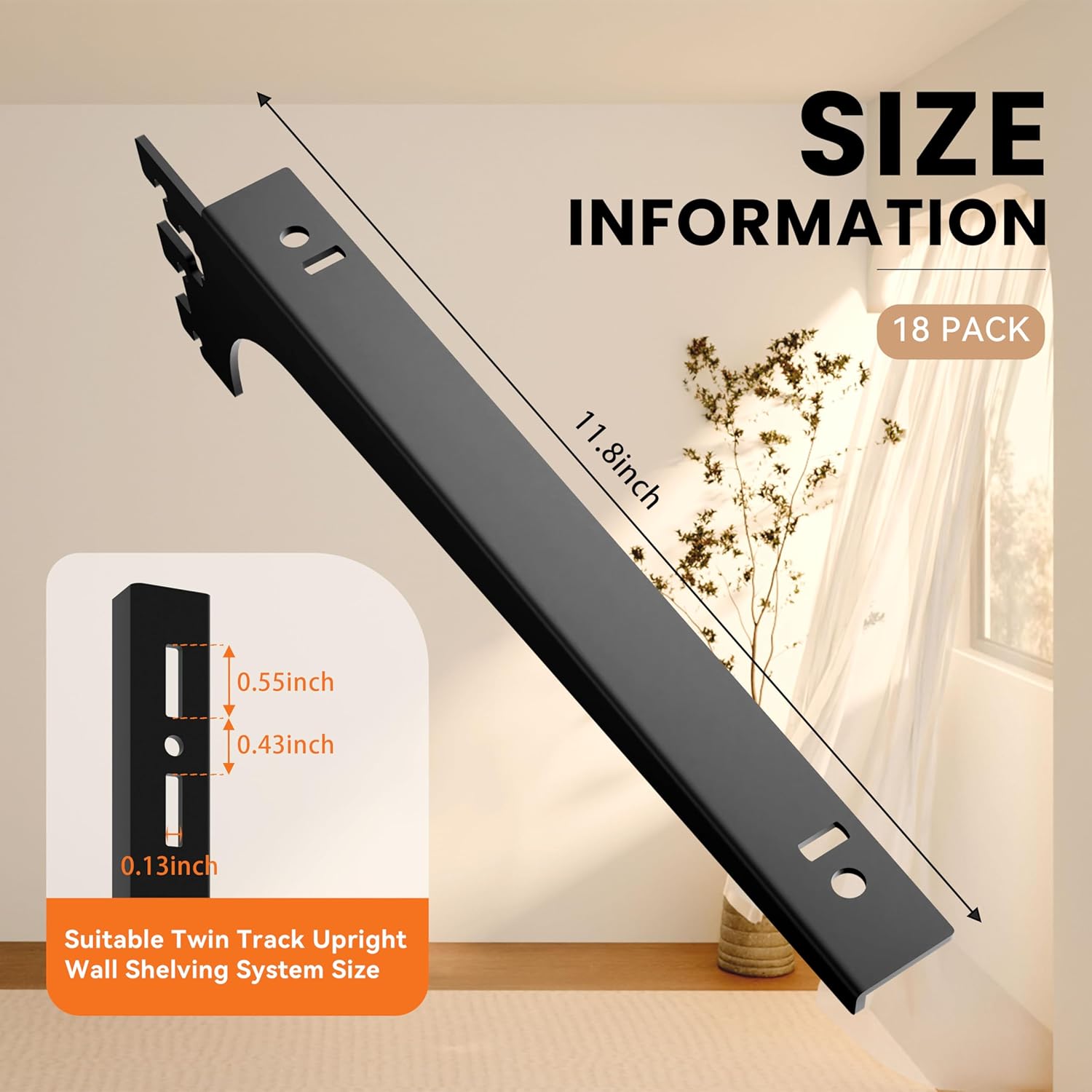 - ăAdjust Different HightăYou will get 3 pieces of shelf rails for this garage shelves and 18 pieces of double track brackets, you can adjust the different hight according your wall's space.Enough to keep you covered for big or small renovation needs, fit tall items like ladders or short bins with zero limitations.