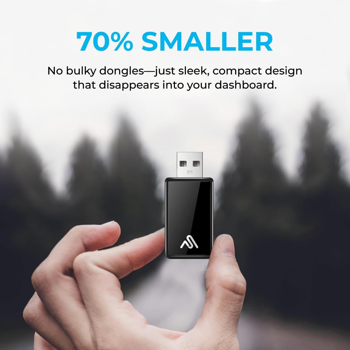 - Enjoy the smallest CarPlay dongle on the market – ultra compact and invisible once installed, blending seamlessly into any vehicle.