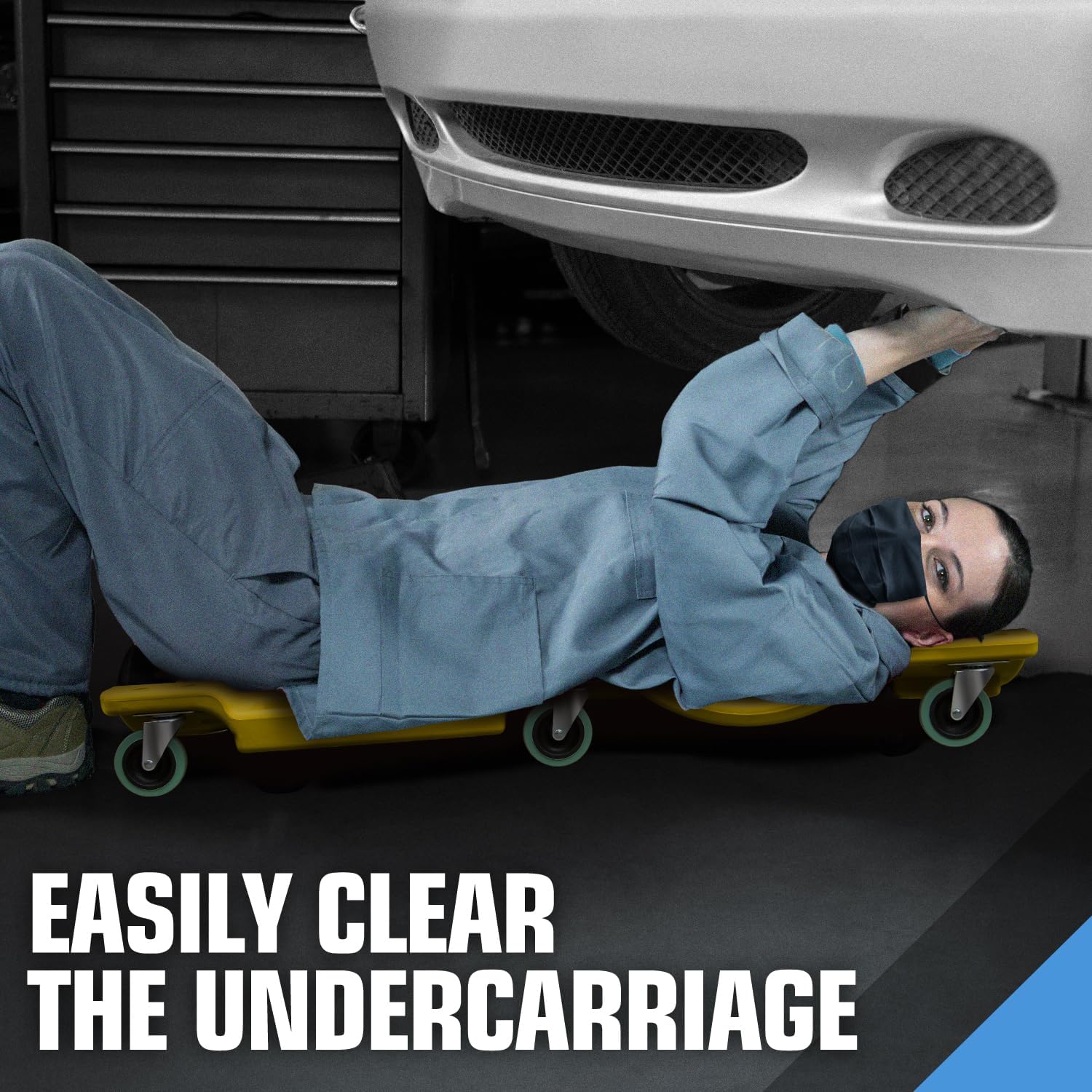 - ROLLING GARAGE SHOP CREEPER - A perfect portable creeper for the automotive engineers. It features built-in carry handles and caster wheels for easy mobility. The lightweight construction makes it easy to carry.