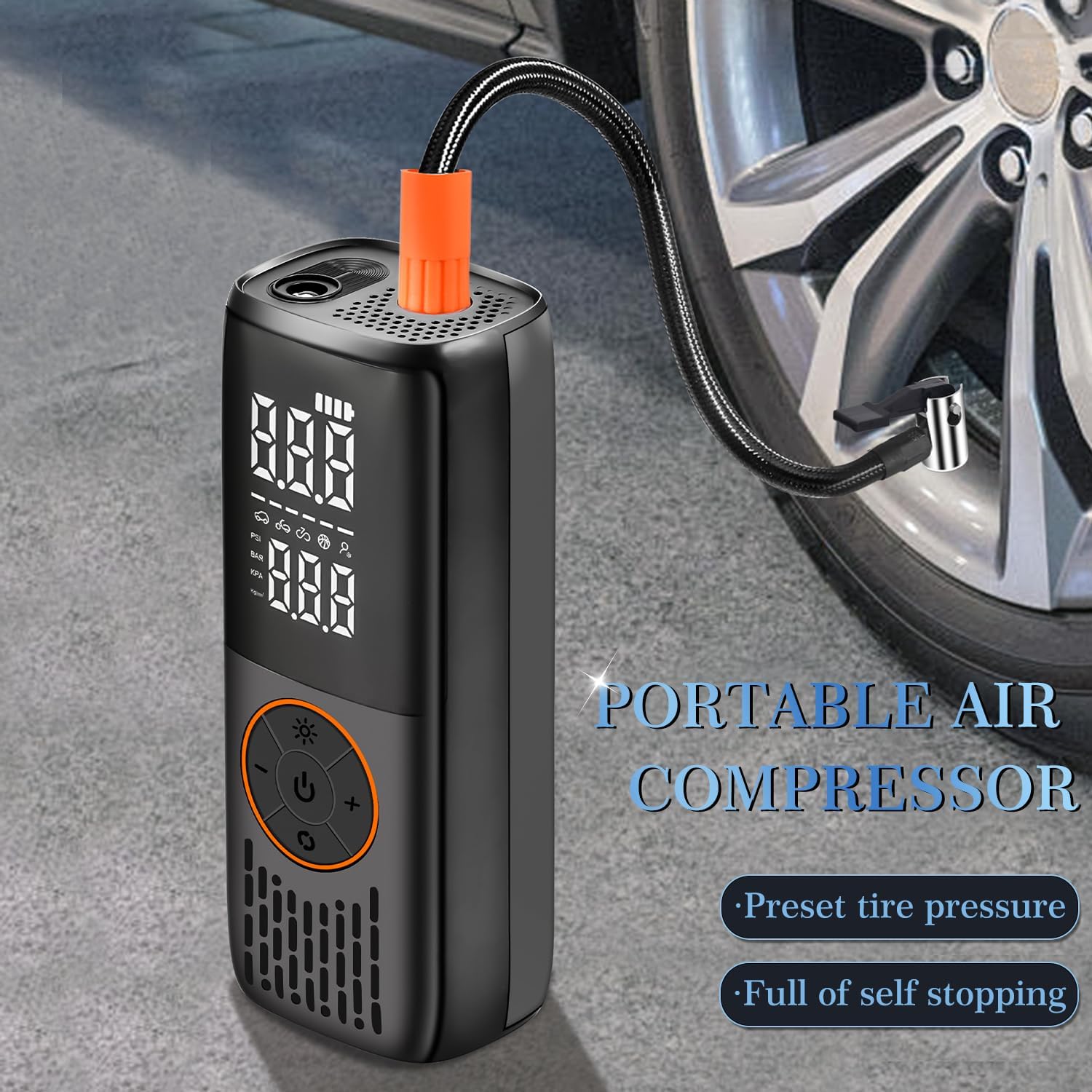 - ăPortable Air CompressorăExperience inflation speeds 3X faster than traditional pumps, with an impressive 35% improvement in efficiencyâperfect for quickly completing tasks. With a powerful 150 PSI max pressure, this portable air compressor effortlessly handles the inflation needs of car tires, bicycles, motorcycles, sports balls, and more. Enjoy enhanced safety, driving comfort, and peace of mind on the road or at home.